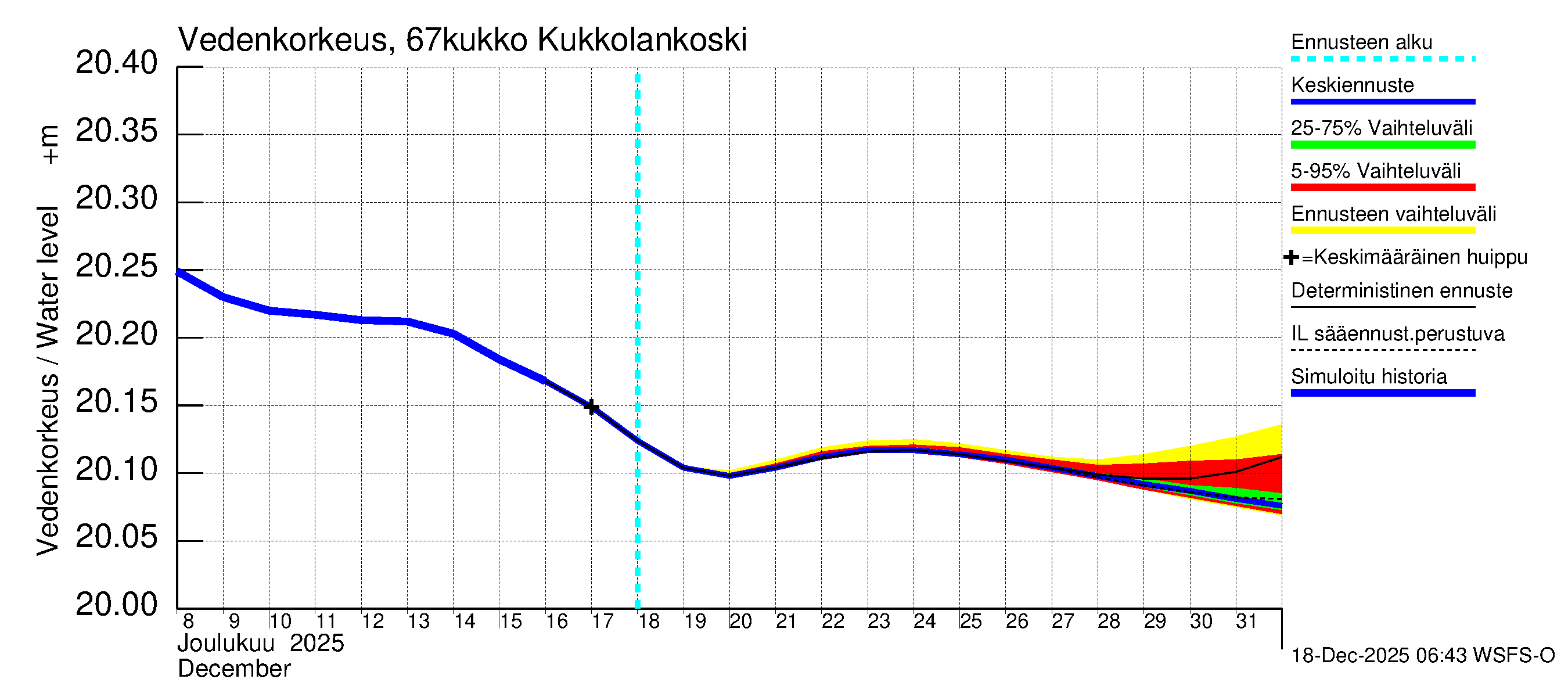 Tornionjoen vesistöalue - Kukkolankoski: Vedenkorkeus - huippujen keski- ja ääriennusteet