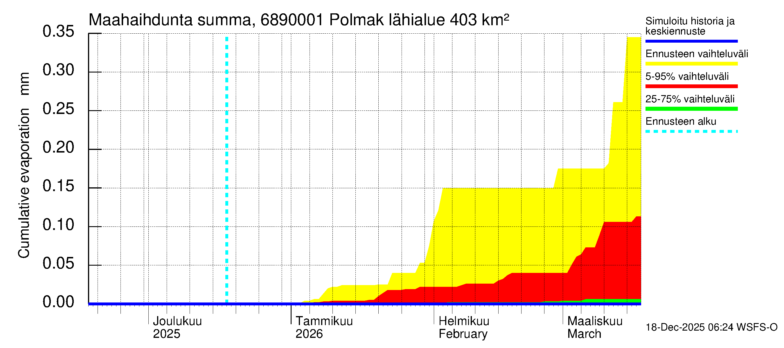 Tenojoen vesistöalue - Polmak: Haihdunta maa-alueelta - summa