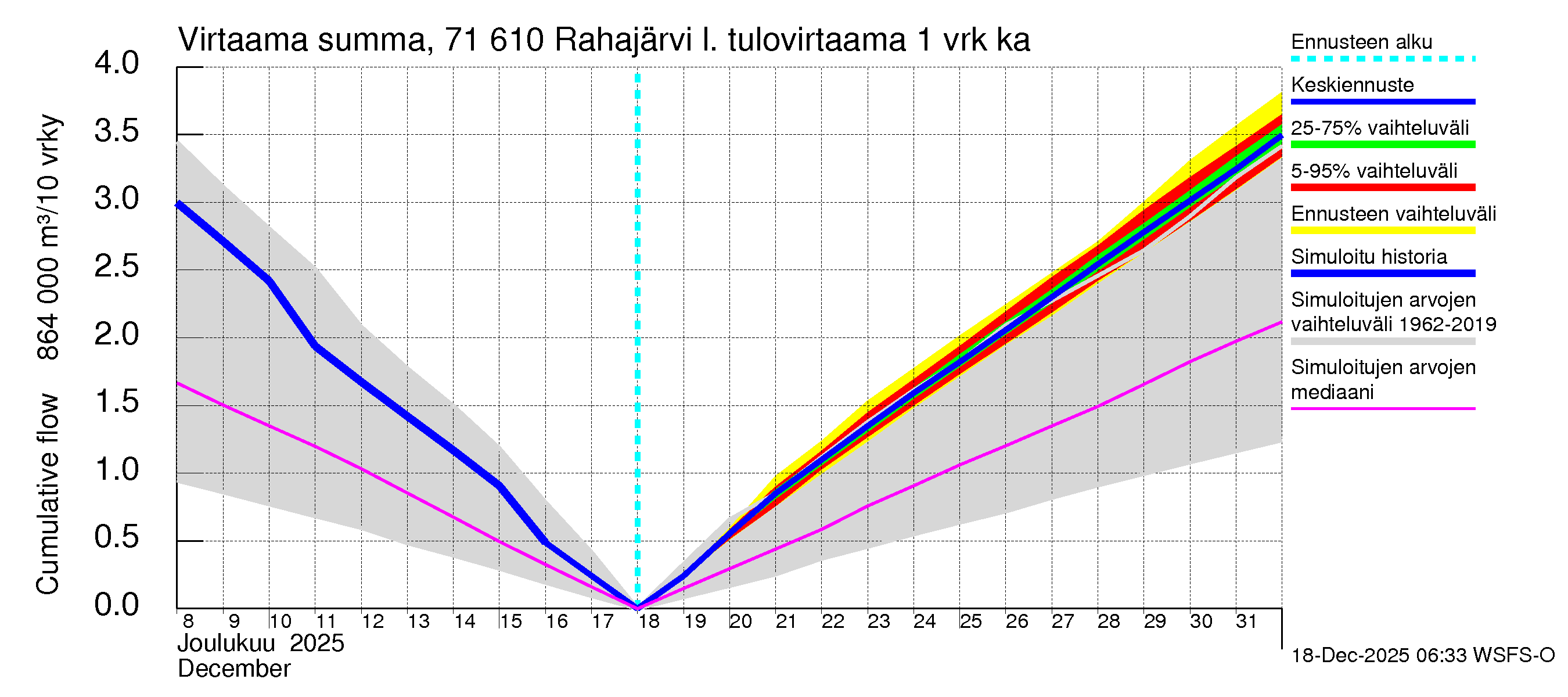 Paatsjoen vesistöalue - Rahajärvi: Tulovirtaama (usean vuorokauden liukuva keskiarvo) - jakaumaennuste