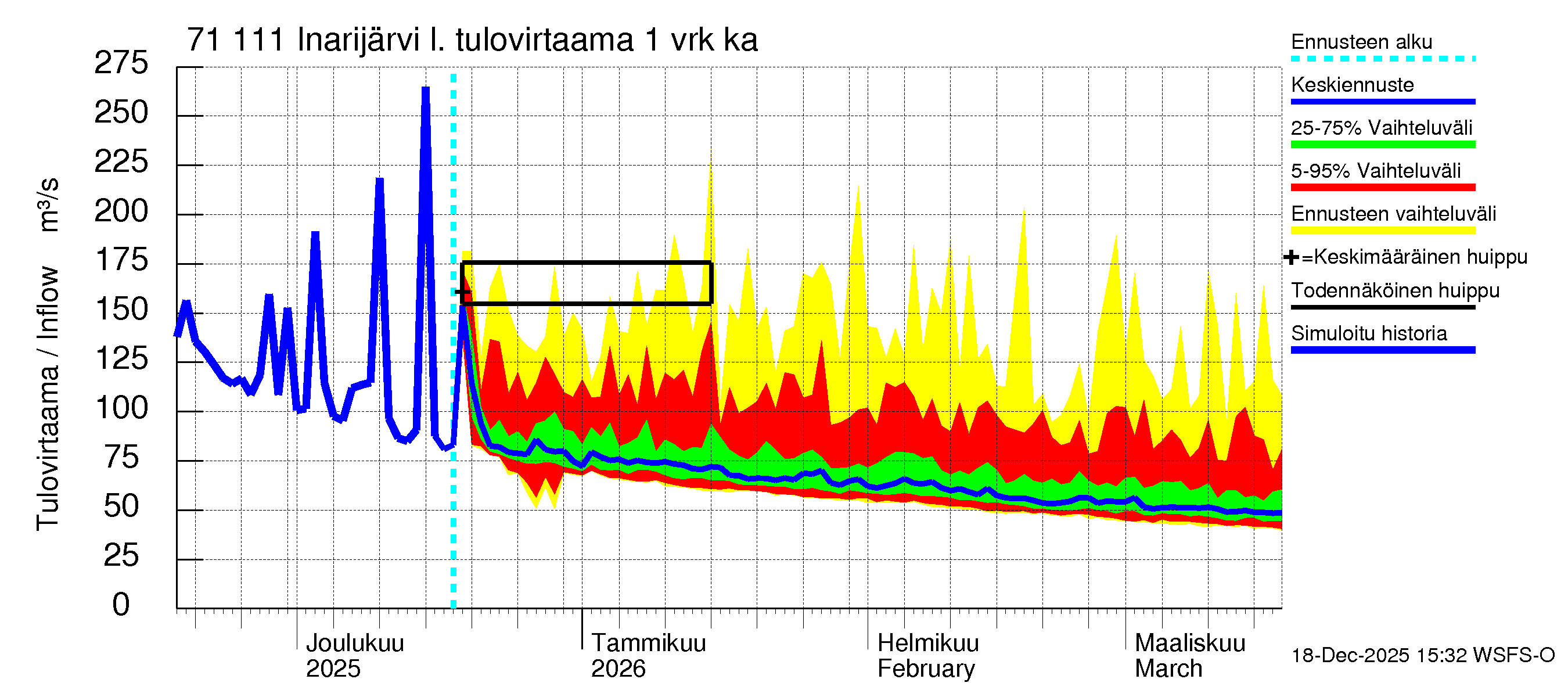 Paatsjoen vesistöalue - Inarijärvi Nellim: Tulovirtaama (usean vuorokauden liukuva keskiarvo) - jakaumaennuste
