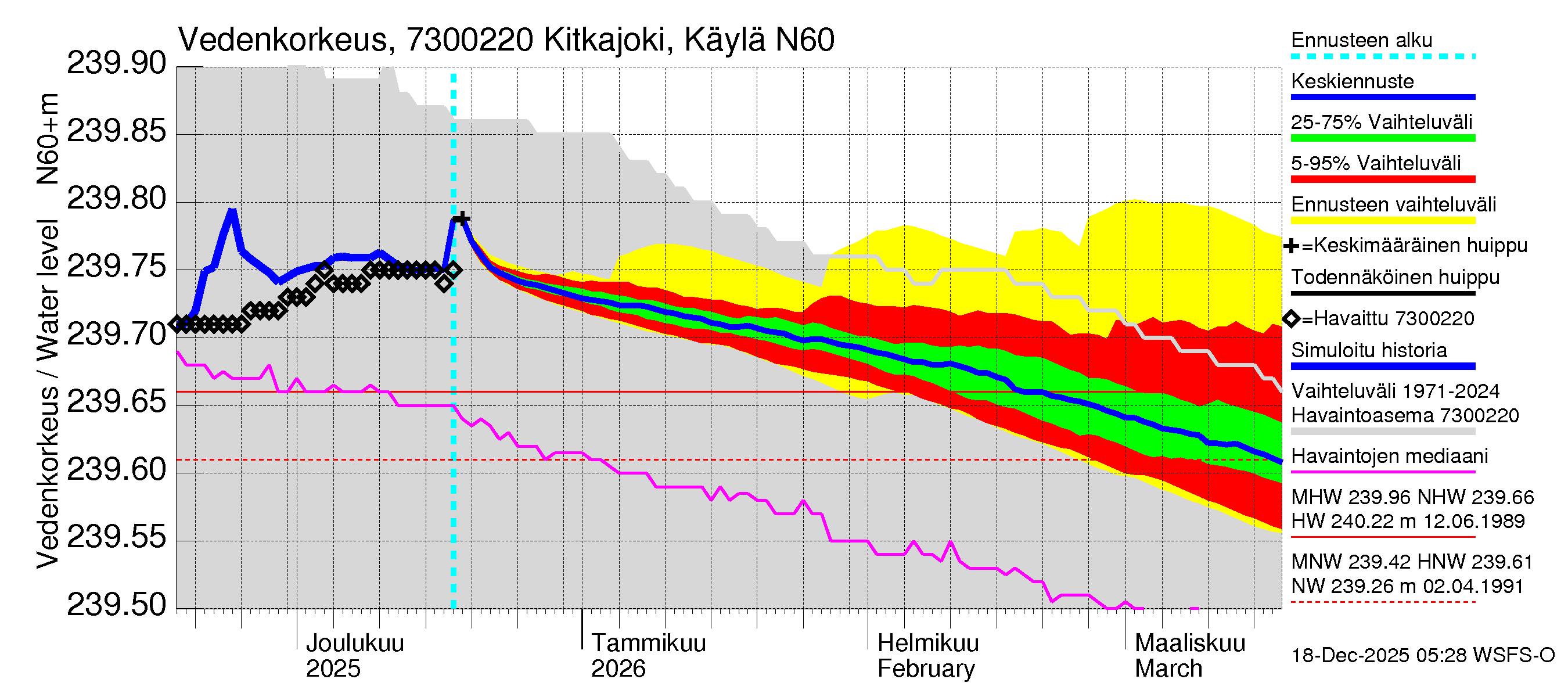 Koutajoen vesistöalue - Kitkajoki Käylä: Vedenkorkeus - huippujen keski- ja ääriennusteet