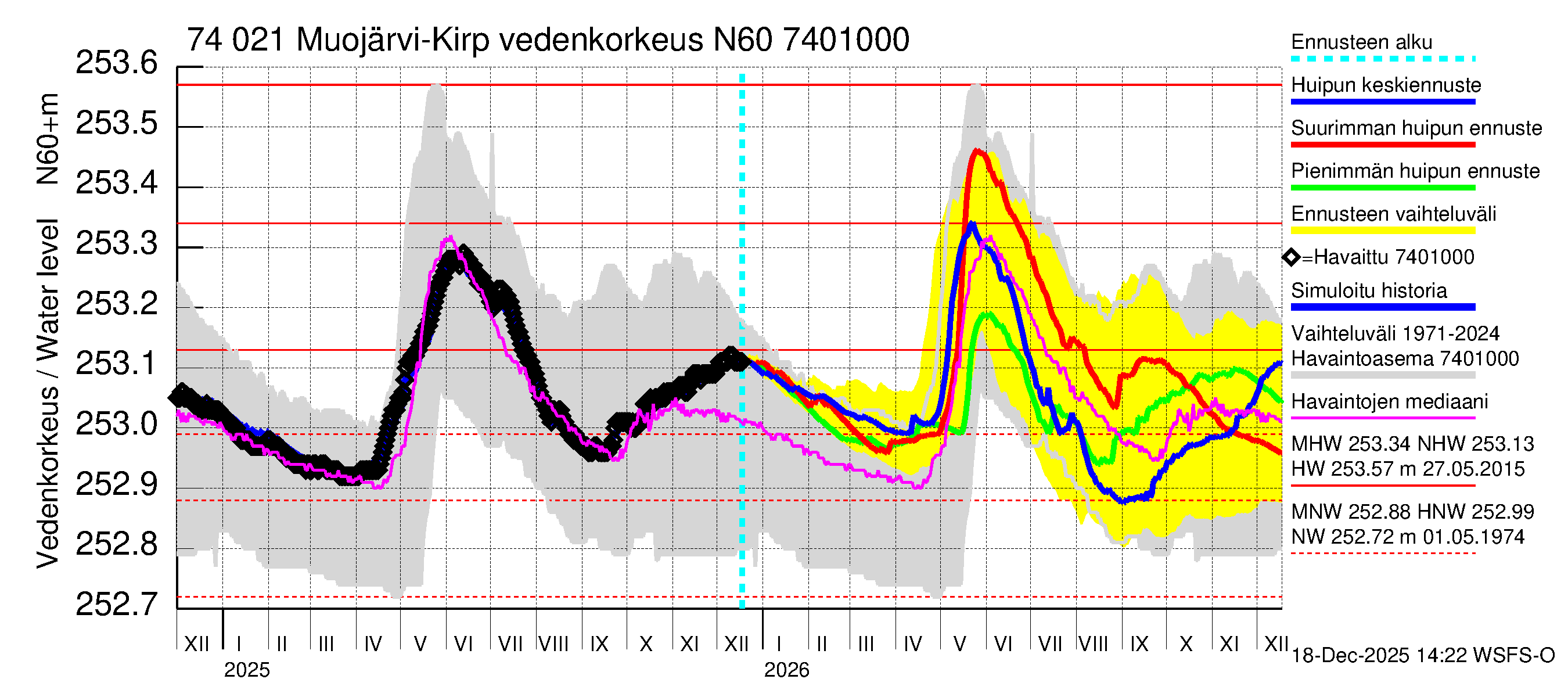 Vienan Kemin vesistöalue - Muojärvi Kirpistö: Vedenkorkeus - huippujen keski- ja ääriennusteet