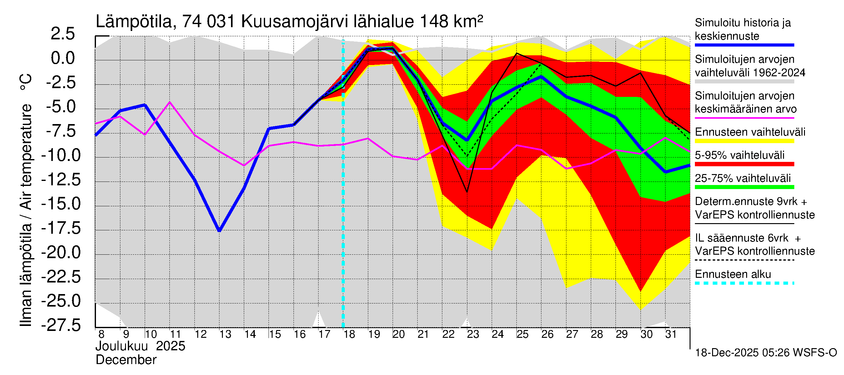Vienan Kemin vesistöalue - Kuusamojärvi: Ilman lämpötila