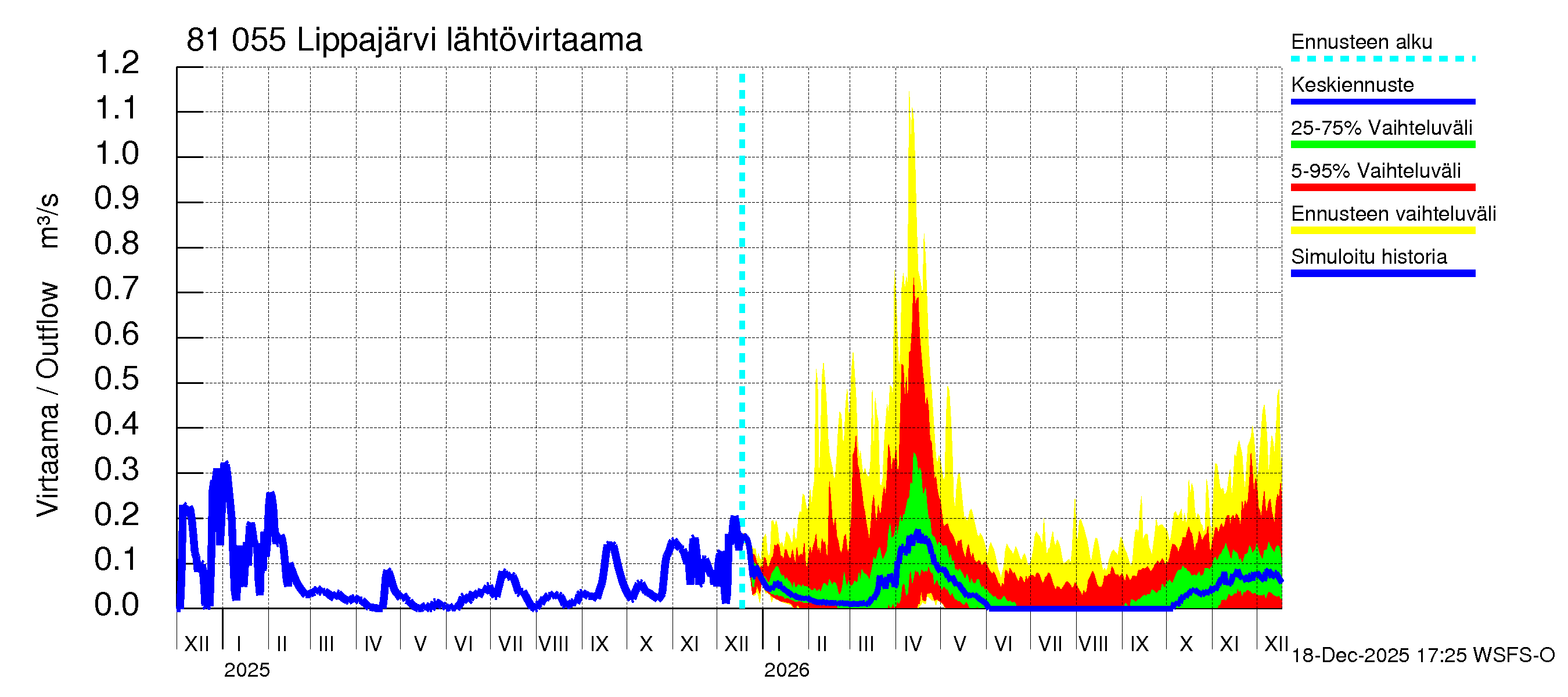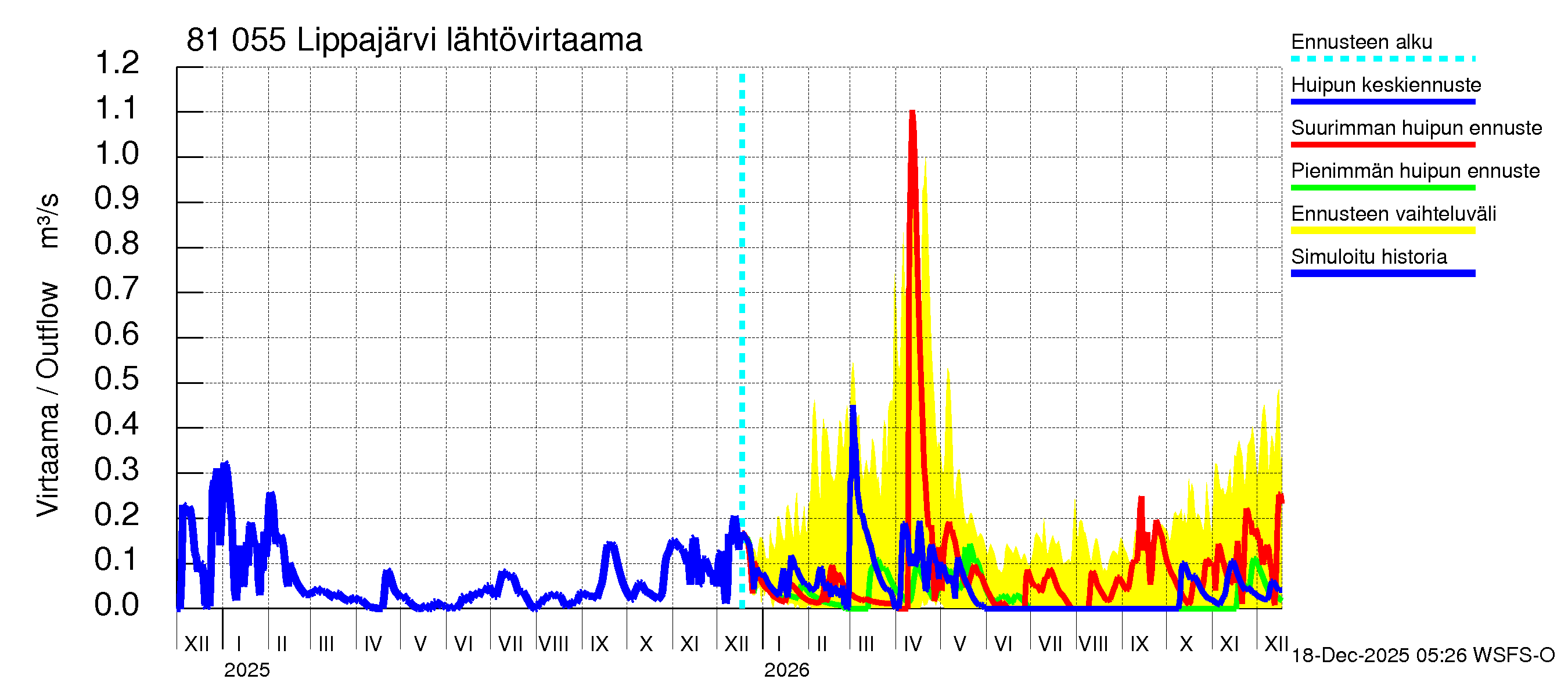 Mankin- ja Espoonjoen vesistöalue - Lippajärvi: Lähtövirtaama / juoksutus - huippujen keski- ja ääriennusteet