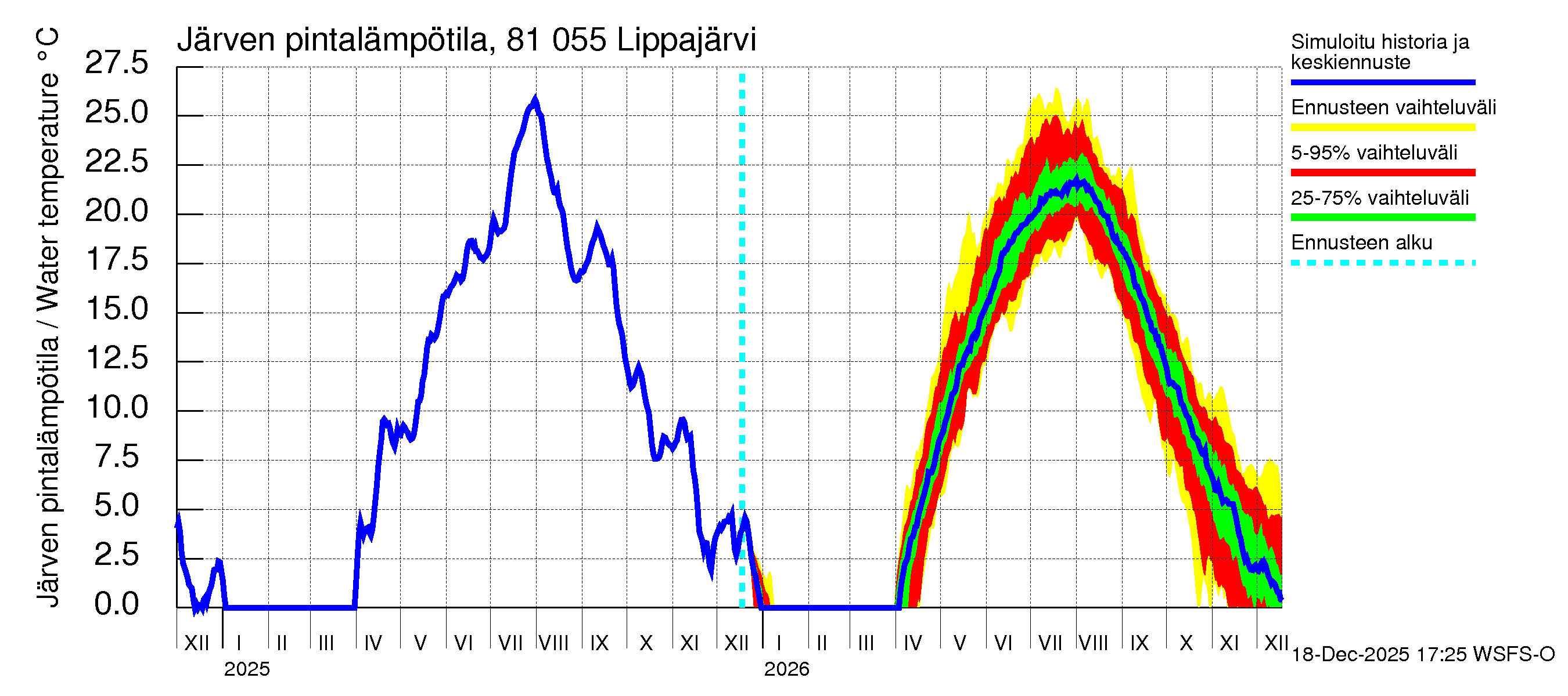 Mankin- ja Espoonjoen vesistöalue - Lippajärvi: Järven pintalämpötila