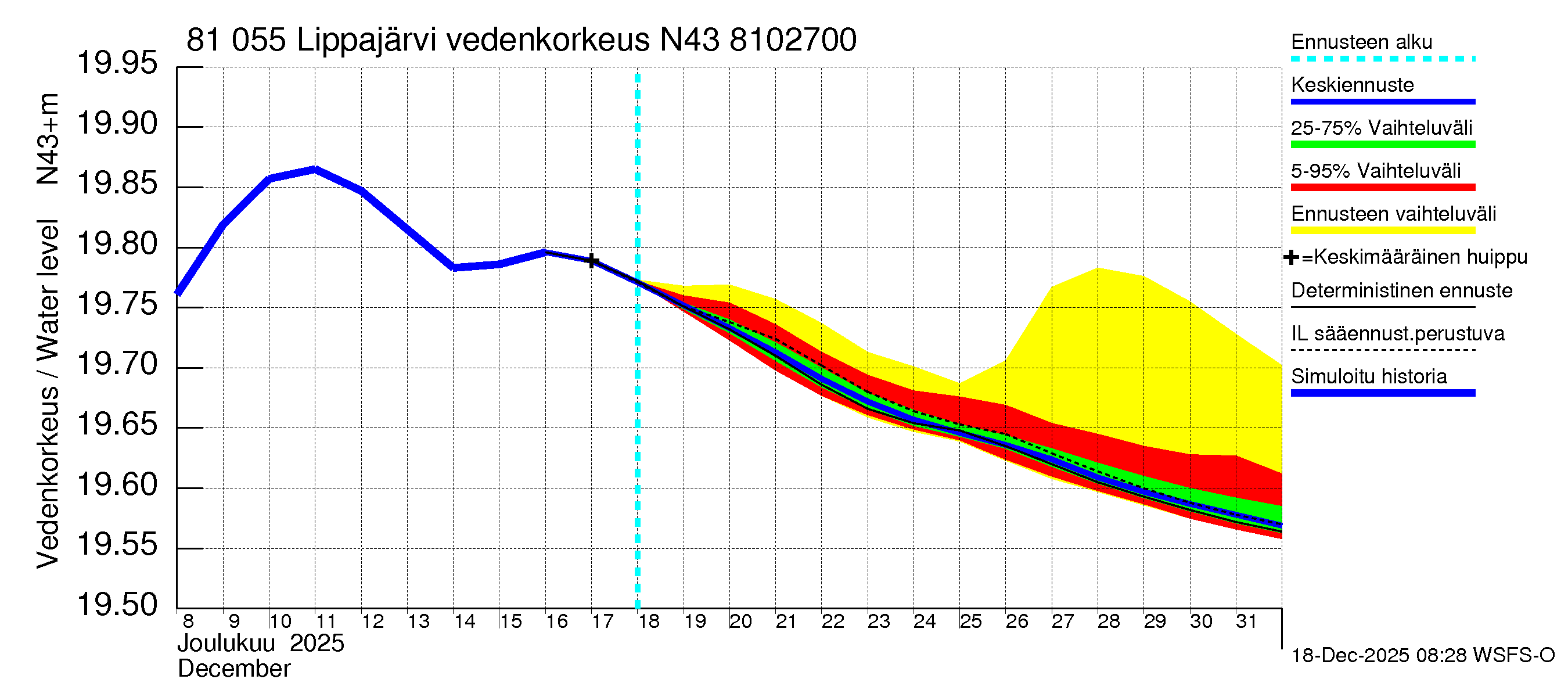 Mankin- ja Espoonjoen vesistöalue - Lippajärvi: Vedenkorkeus - jakaumaennuste