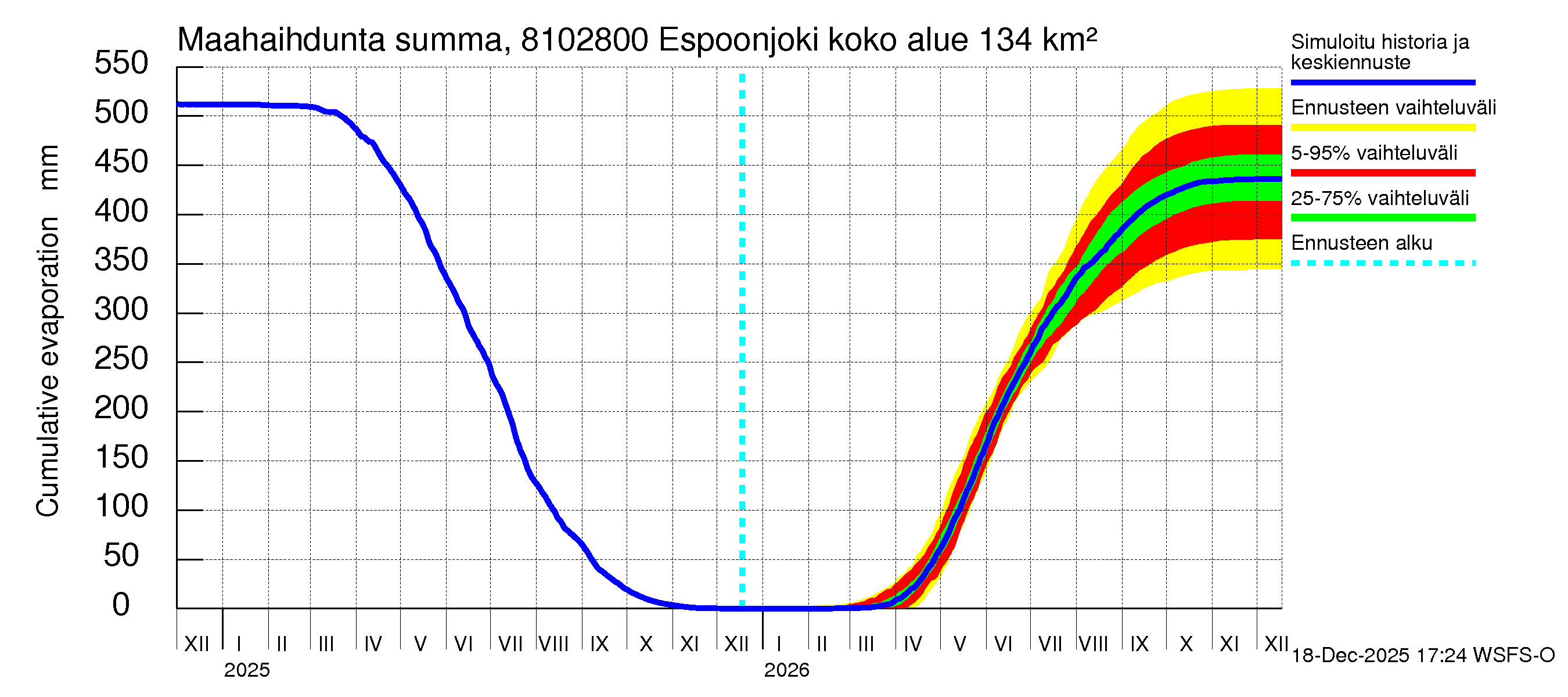 Mankin- ja Espoonjoen vesistöalue - Espoonjoki Kauklahti: Haihdunta maa-alueelta - summa