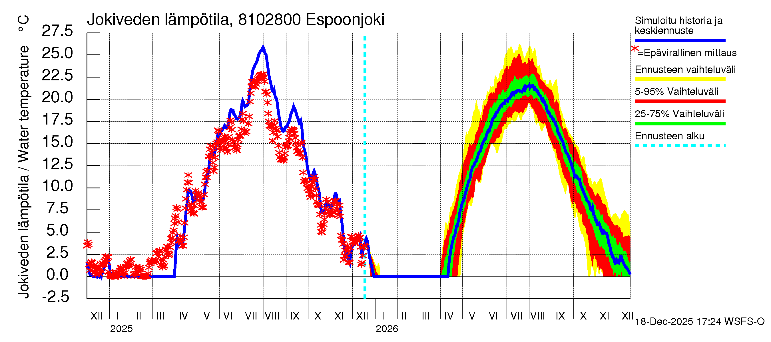 Mankin- ja Espoonjoen vesistöalue - Espoonjoki Kauklahti: Jokiveden lämpötila