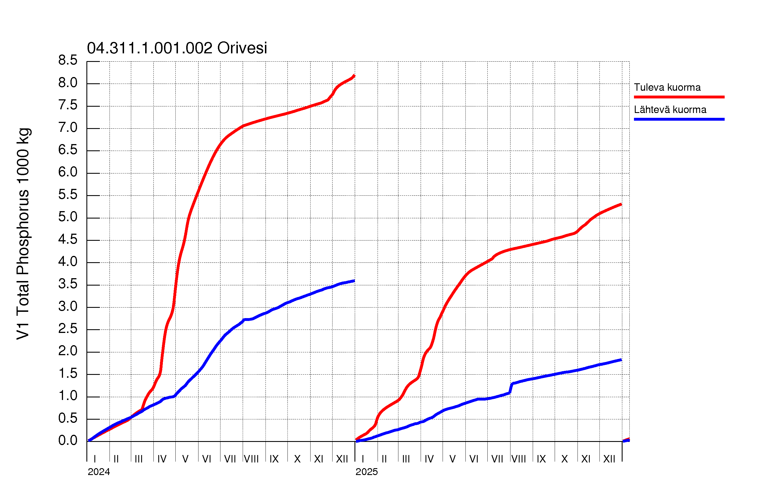 WSFS-Vemala: Kokonaisfosforikuormitus: Vuoksen vesistöalue - OrivesiAsiantuntijan työpöytä > Ravinnekuormitus > Suomenlahti (Laatokka) > Vuoksen vesistöalue > OrivesiFOSFORI | TYPPI | KIINTOAINE