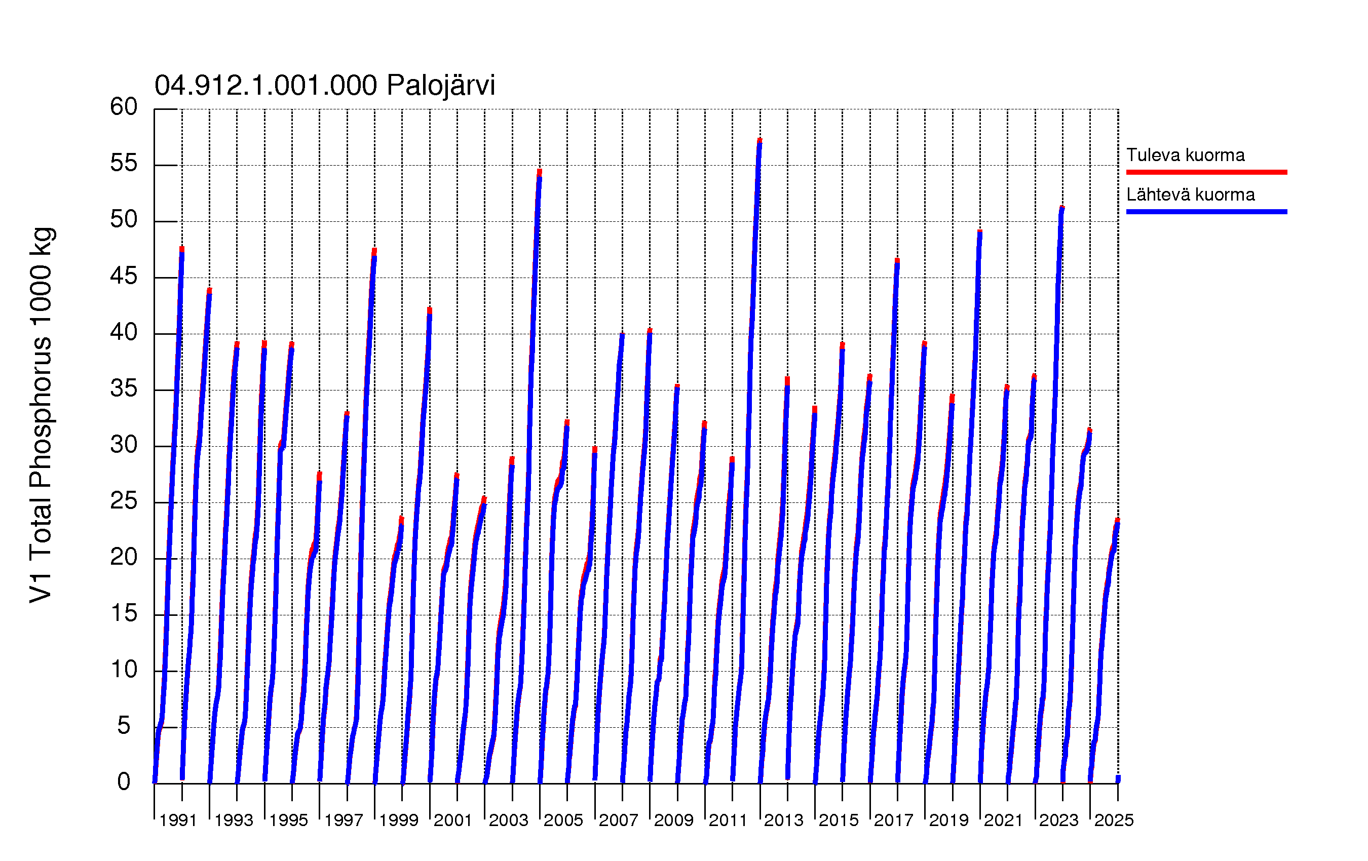 WSFS-Vemala: Kokonaisfosforikuormitus: Vuoksen vesistöalue - PalojärviAsiantuntijan työpöytä > Ravinnekuormitus > Suomenlahti (Laatokka) > Vuoksen vesistöalue > PalojärviFOSFORI | TYPPI | KIINTOAINE