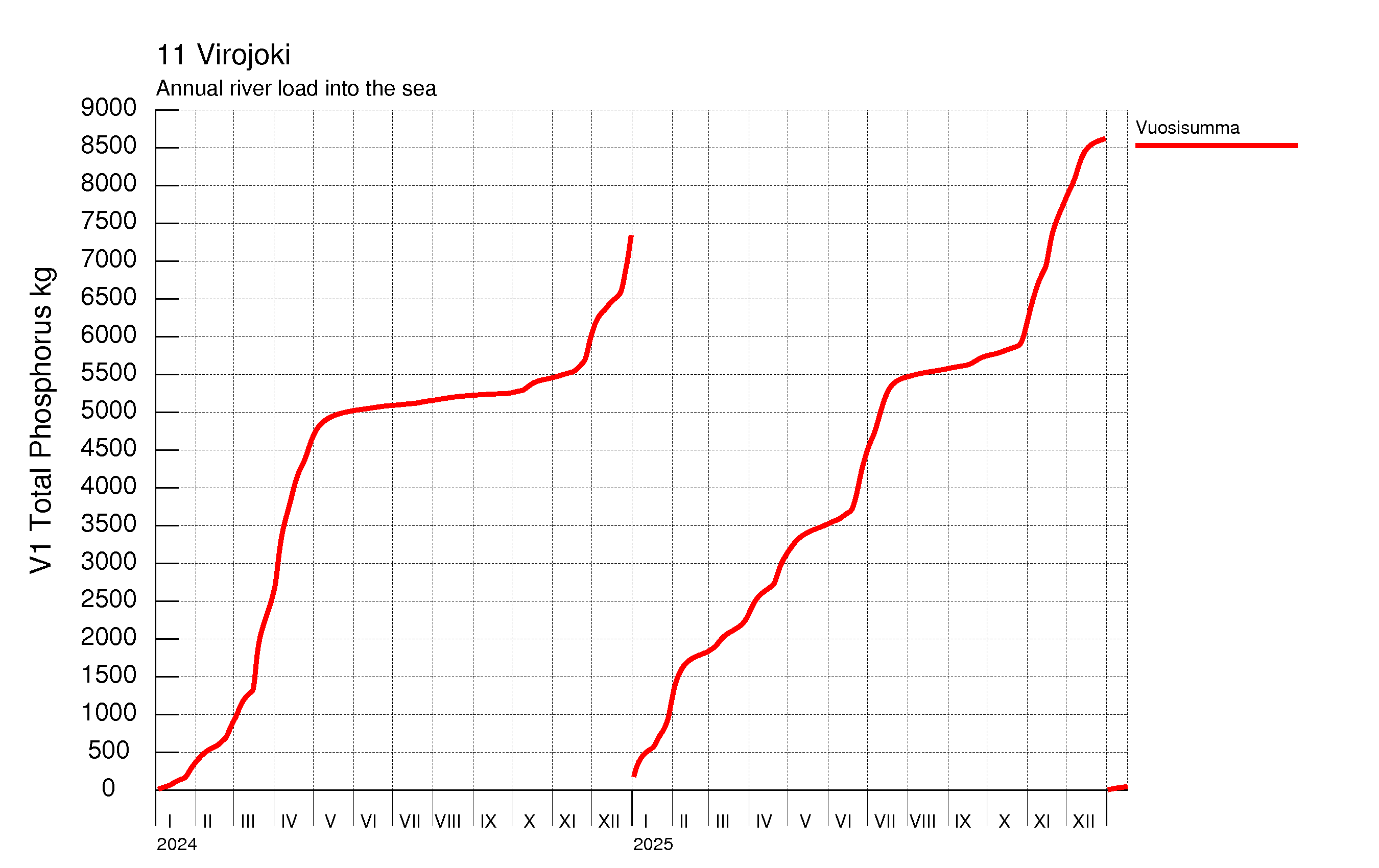 WSFS-Vemala: Kokonaisfosforikuormitus: Virojoen vesistöalue - summa