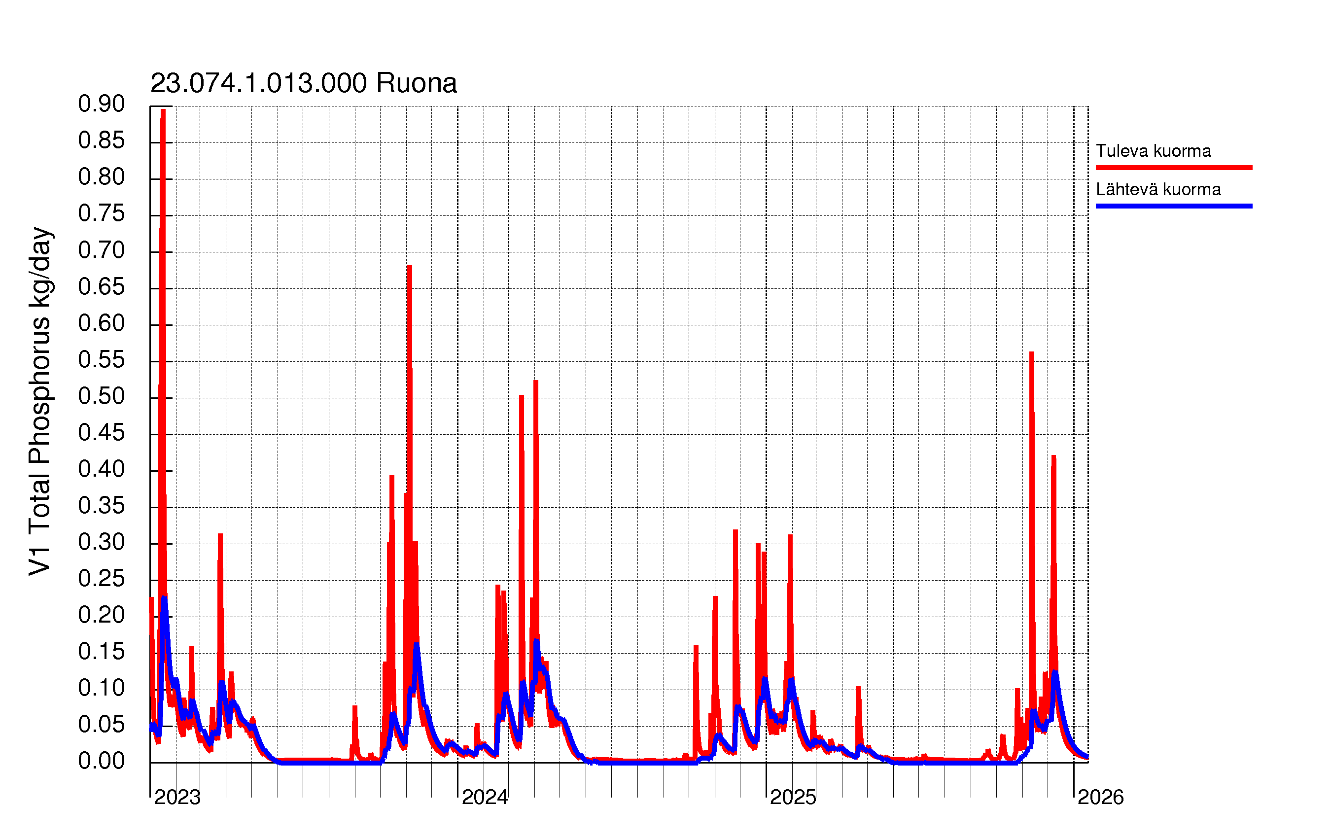 WSFS-Vemala: Kokonaisfosforikuormitus: Karjaanjoen vesistöalue - RuonaAsiantuntijan työpöytä > Ravinnekuormitus > Suomenlahti > Karjaanjoen vesistöalue > RuonaFOSFORI | TYPPI | KIINTOAINE