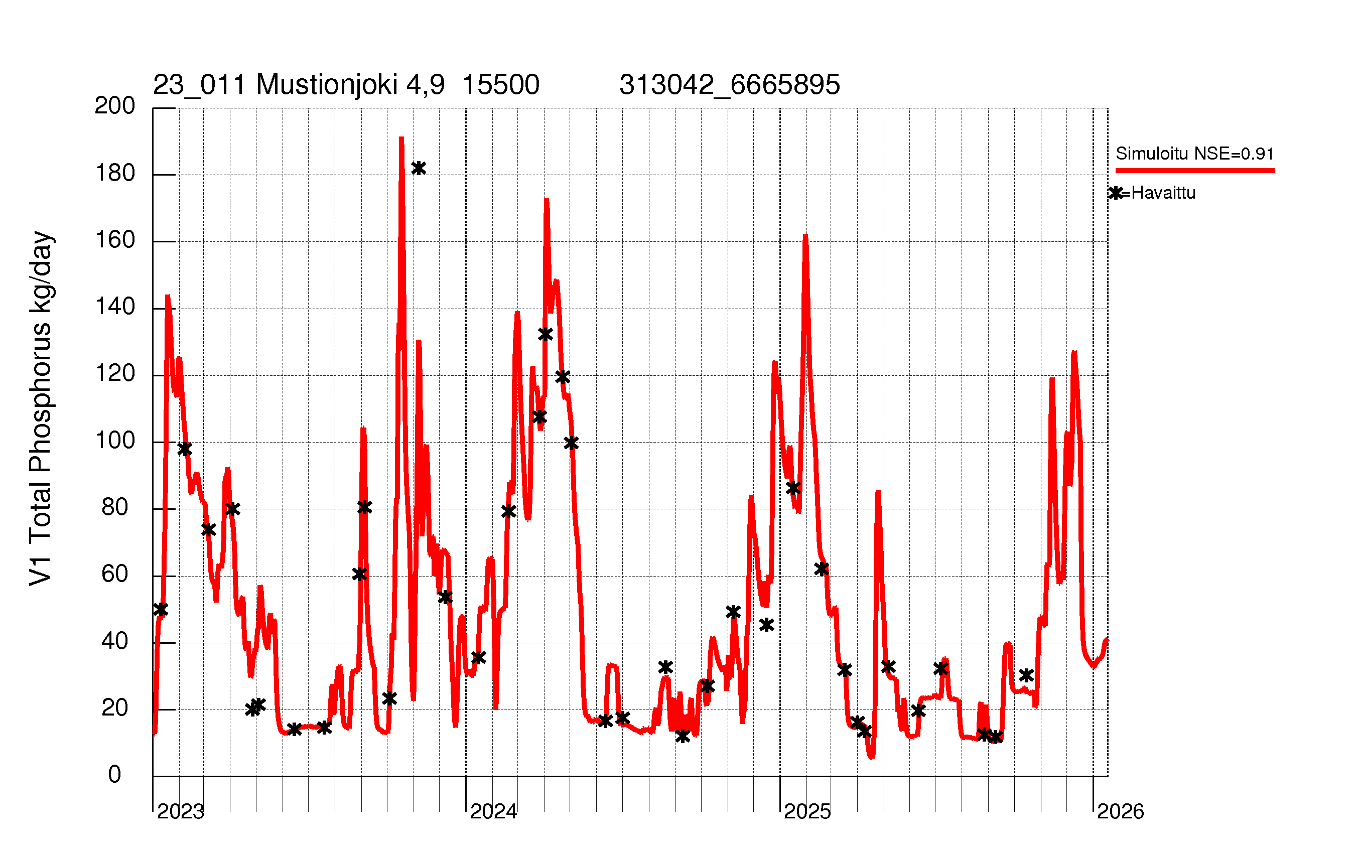 Fosforikuorma![]() Fosfori summakuorma![]() ![]() Fosforipitoisuus![]() Virtaama![]() |