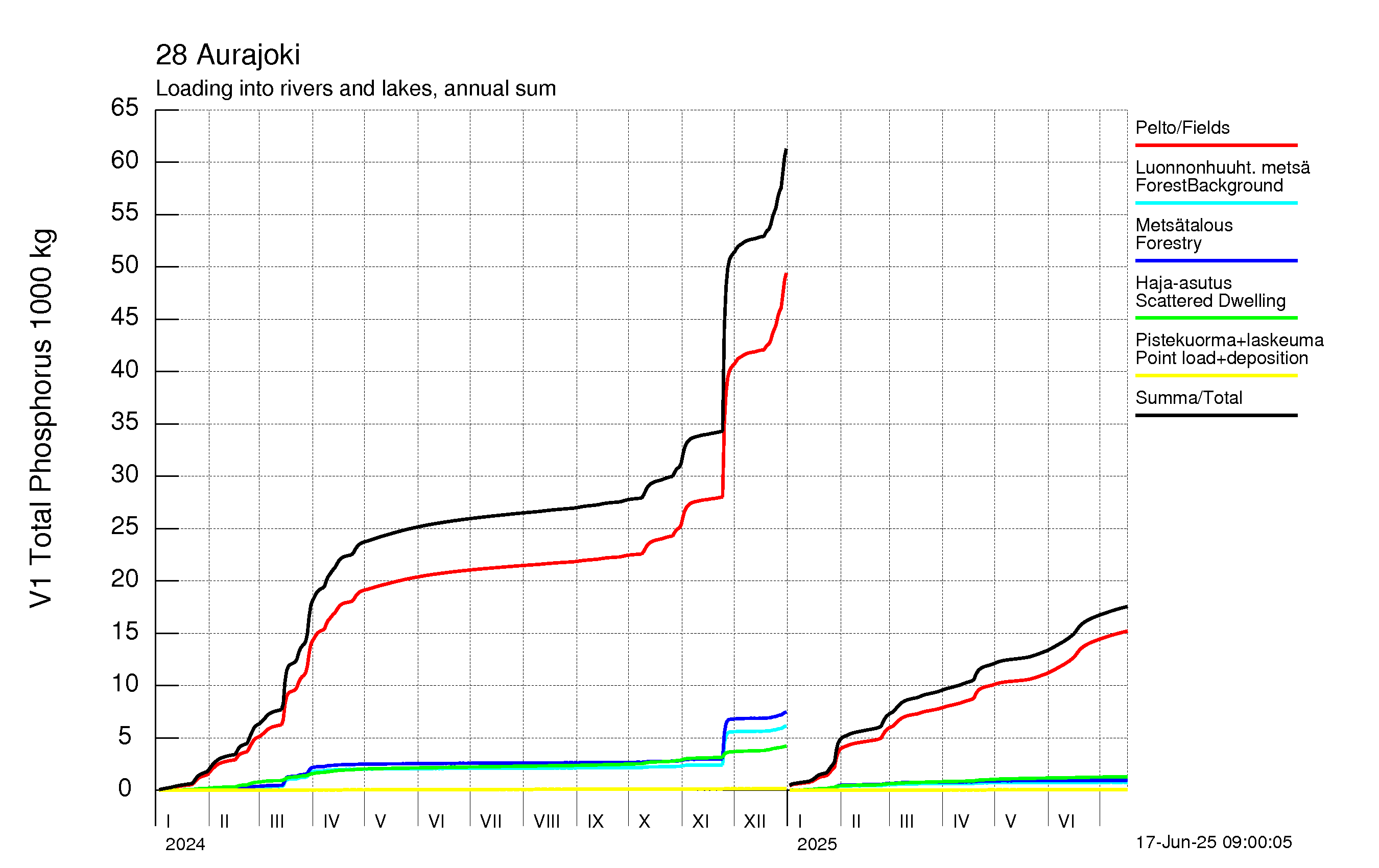 WSFS-Vemala: Kokonaisfosforikuormitus: Aurajoen vesistöalue - summa