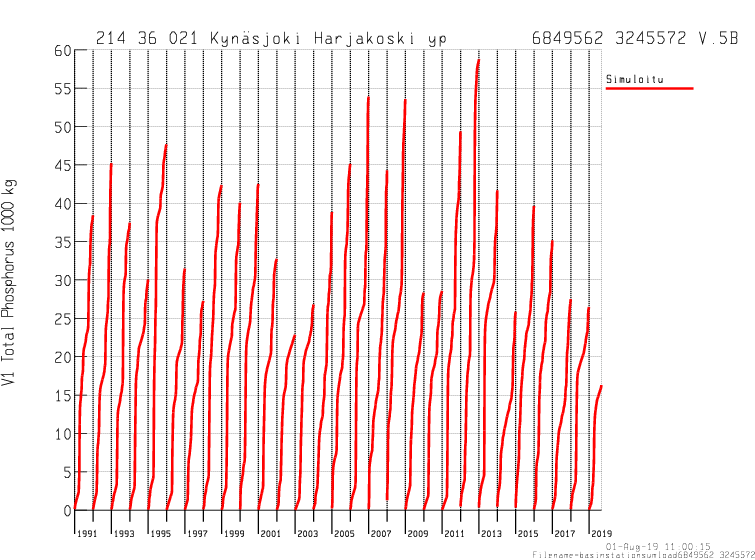Kokonaisfosforikuormitus: Karvianjoen vesistöalue - Kynäsjoki Harjakoski
