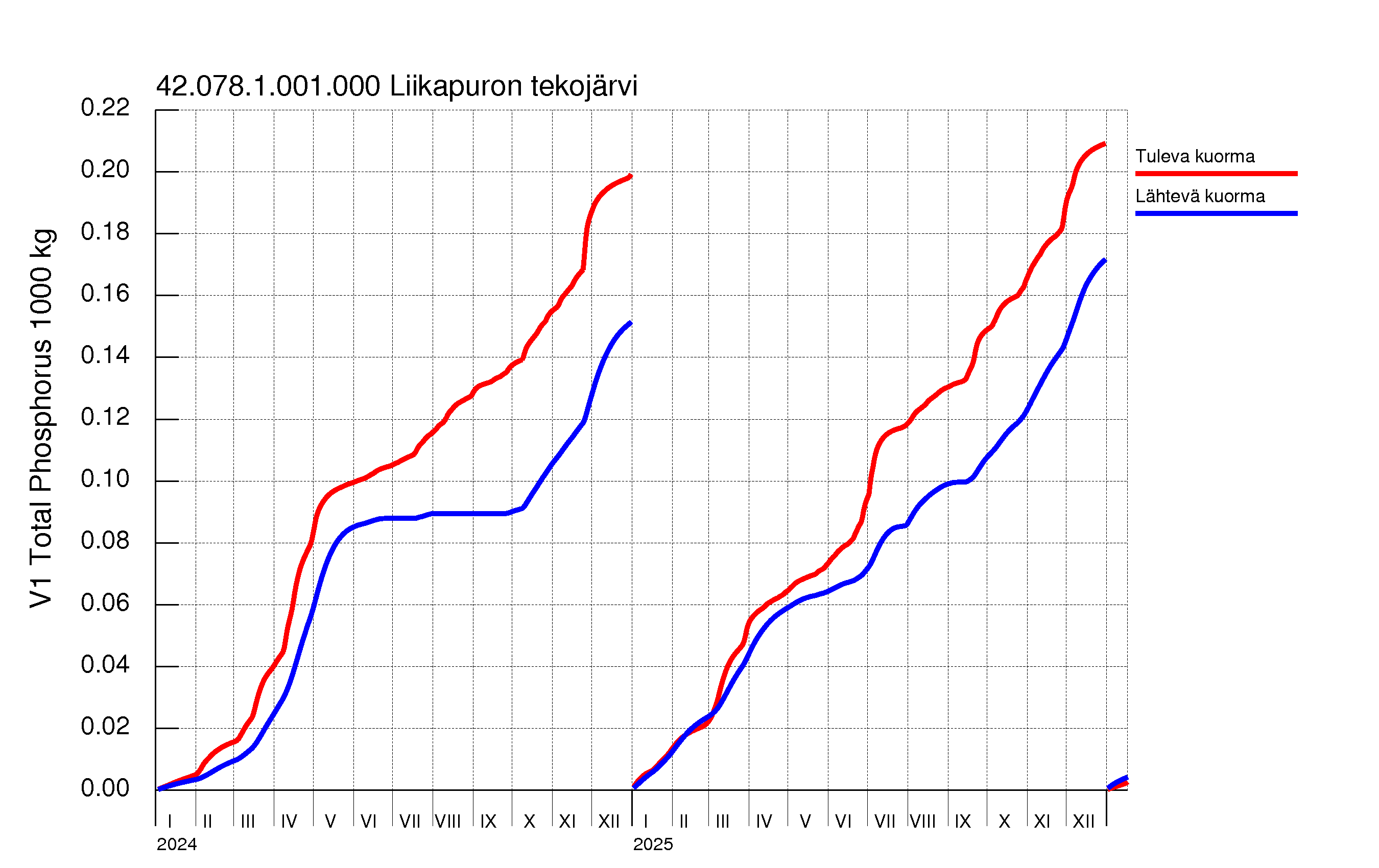 WSFS-Vemala: Kokonaisfosforikuormitus: Kyrönjoen vesistöalue - Liikapuron tekojärviAsiantuntijan työpöytä > Ravinnekuormitus > Selkämeri > Kyrönjoen vesistöalue > Liikapuron tekojärviFOSFORI | TYPPI | KIINTOAINE