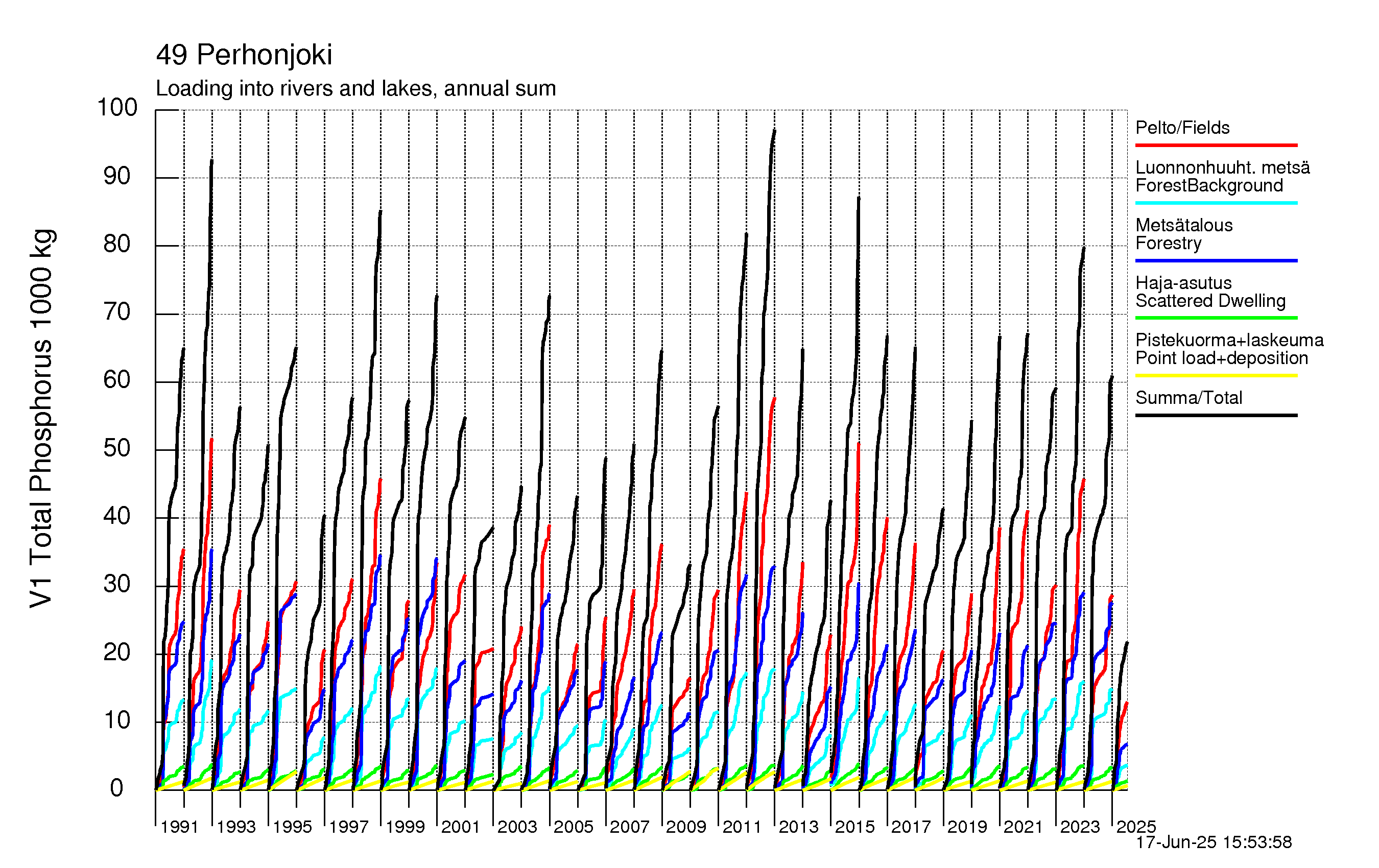 WSFS-Vemala: Kokonaisfosforikuormitus: Perhonjoen vesistöalue - summa