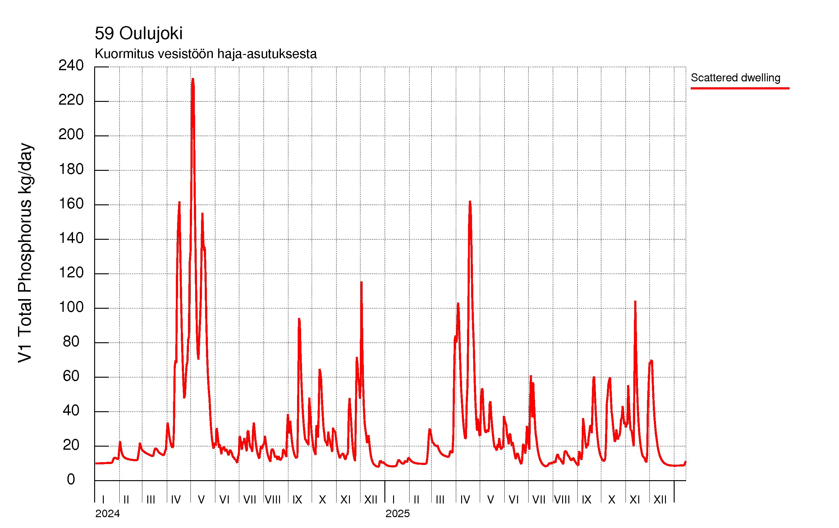WSFS-Vemala: Kokonaisfosforikuormitus: Oulujoen vesistöalue - summa