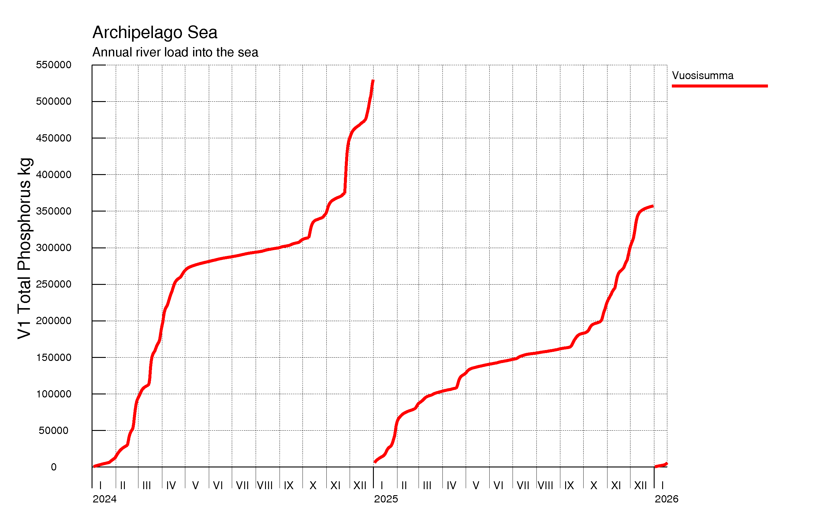 WSFS-Vemala: Kokonaisfosforikuormitus: Saaristomeren alueelle Suomen vesistöistä - summa