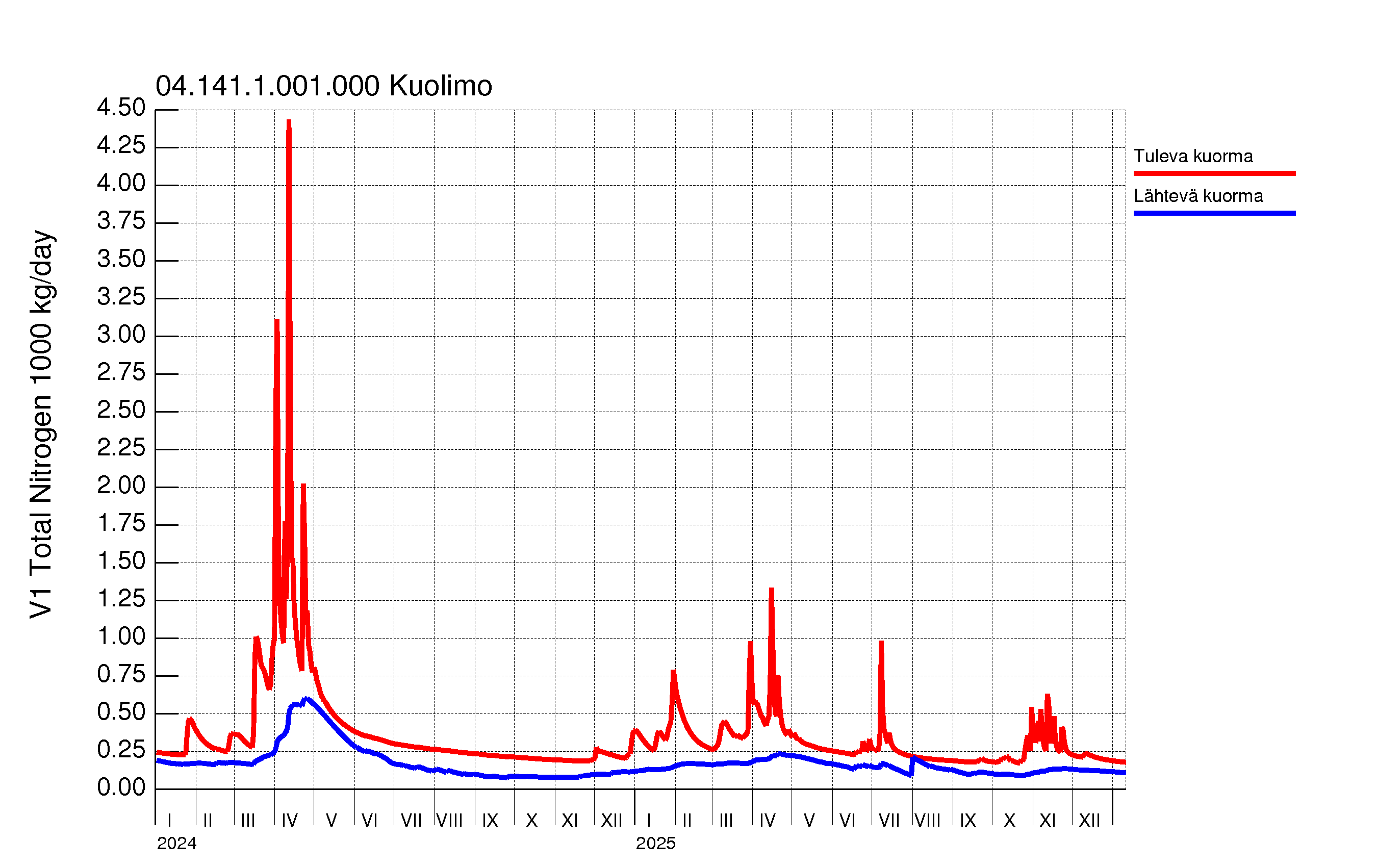 WSFS-Vemala: Kokonaistyppikuormitus: Vuoksen vesistöalue - KuolimoAsiantuntijan työpöytä > Ravinnekuormitus > Suomenlahti (Laatokka) > Vuoksen vesistöalue > KuolimoFOSFORI | TYPPI | KIINTOAINE