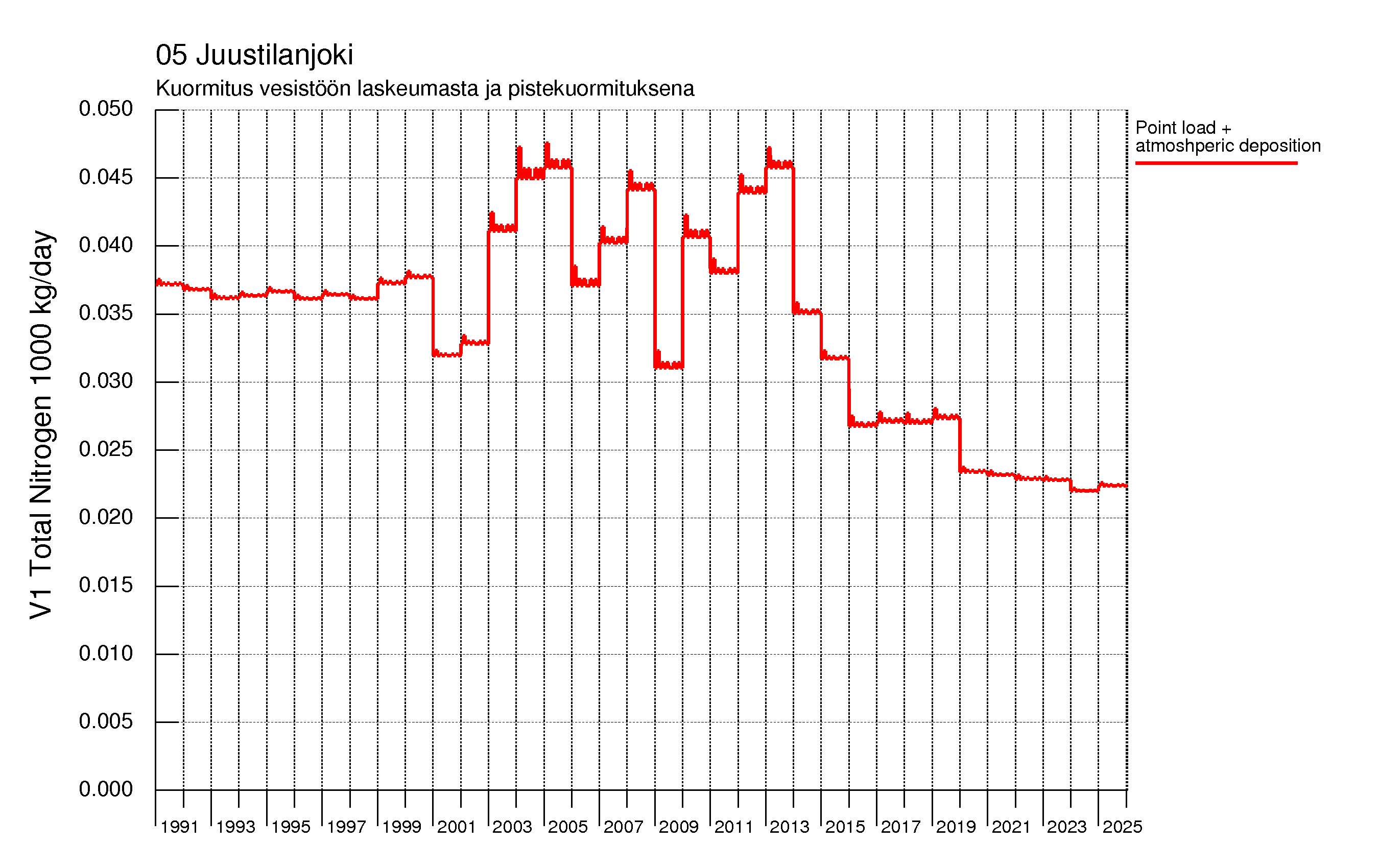 WSFS-Vemala: Kokonaistyppikuormitus: Juustilanjoen vesistöalue - summa