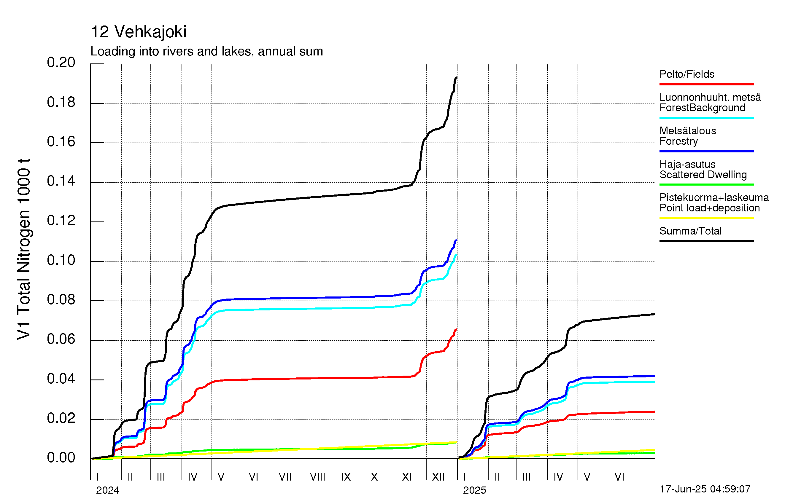 WSFS-Vemala: Kokonaistyppikuormitus: Vehkajoen vesistöalue - summa