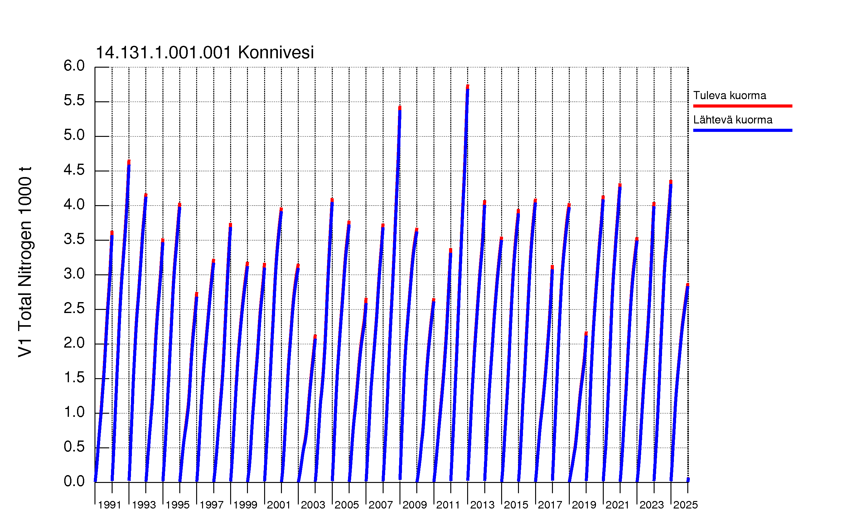 WSFS-Vemala: Kokonaistyppikuormitus: Kymijoen vesistöalue - KonnivesiAsiantuntijan työpöytä > Ravinnekuormitus > Suomenlahti > Kymijoen vesistöalue > KonnivesiFOSFORI | TYPPI | KIINTOAINE