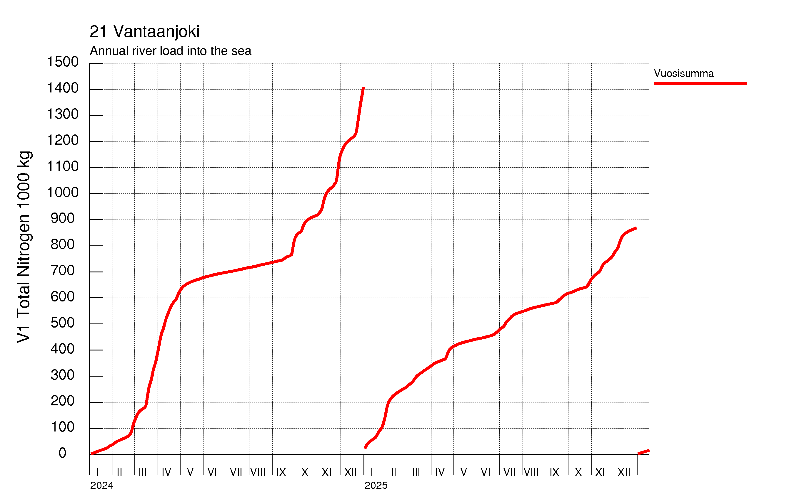 WSFS-Vemala: Kokonaistyppikuormitus: Vantaanjoen vesistöalue - summa