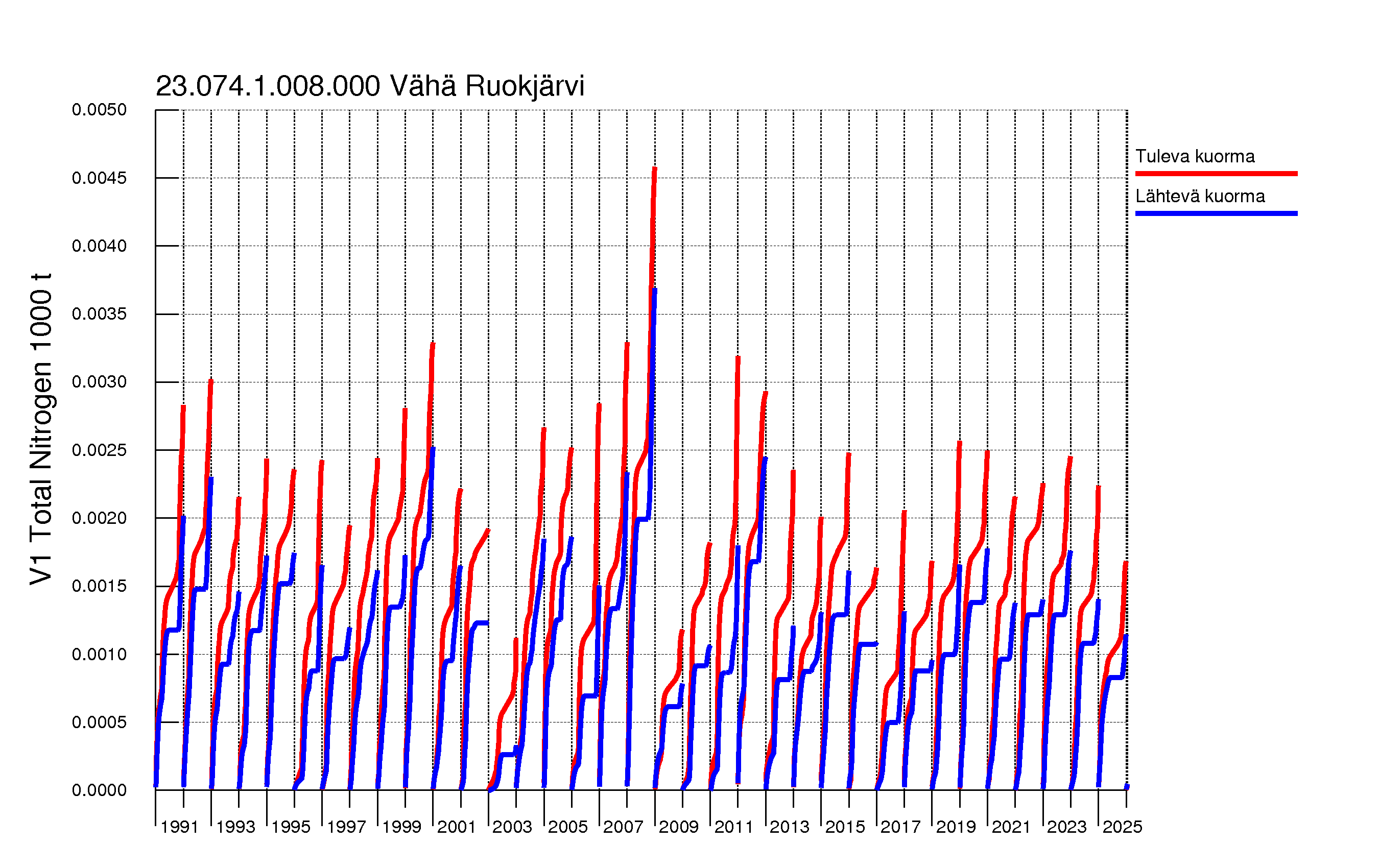 WSFS-Vemala: Kokonaistyppikuormitus: Karjaanjoen vesistöalue - Vähä RuokjärviAsiantuntijan työpöytä > Ravinnekuormitus > Suomenlahti > Karjaanjoen vesistöalue > Vähä RuokjärviFOSFORI | TYPPI | KIINTOAINE