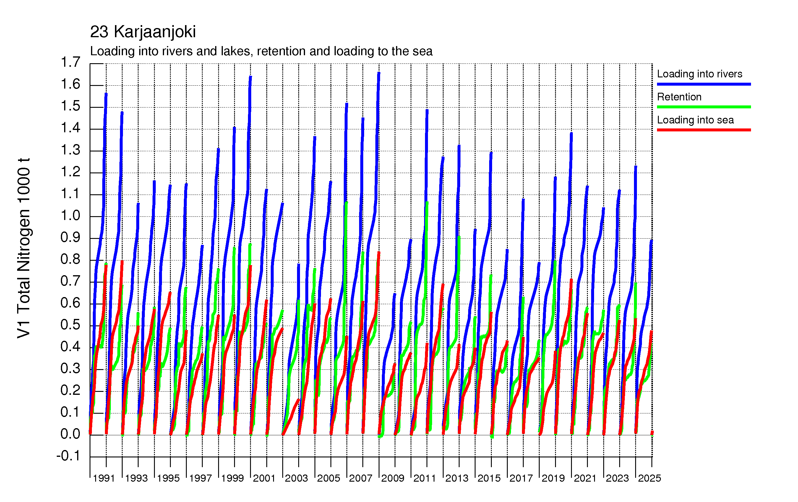 WSFS-Vemala: Kokonaistyppikuormitus: Karjaanjoen vesistöalue - summa