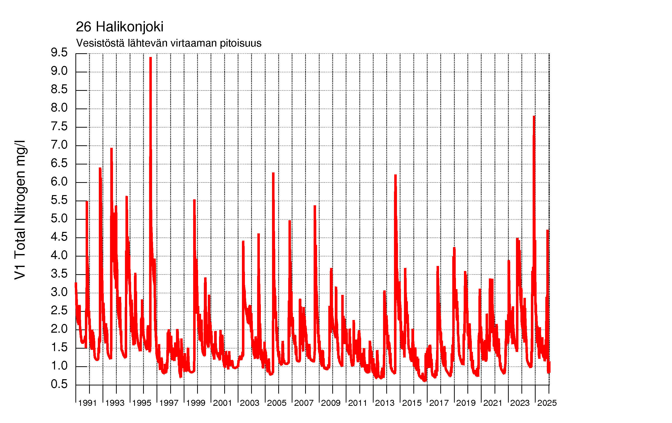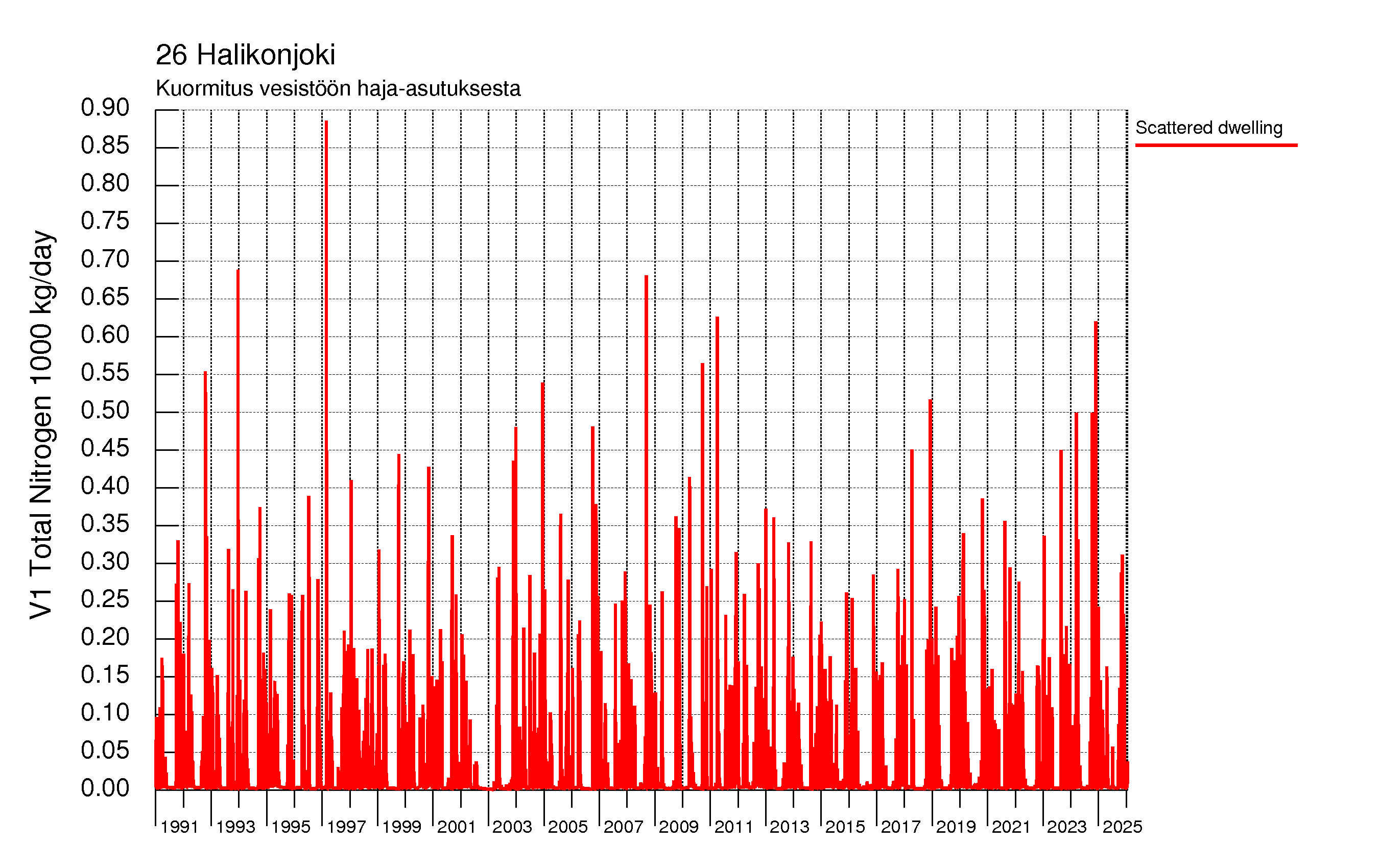 WSFS-Vemala: Kokonaistyppikuormitus: Halikonjoen vesistöalue - summa