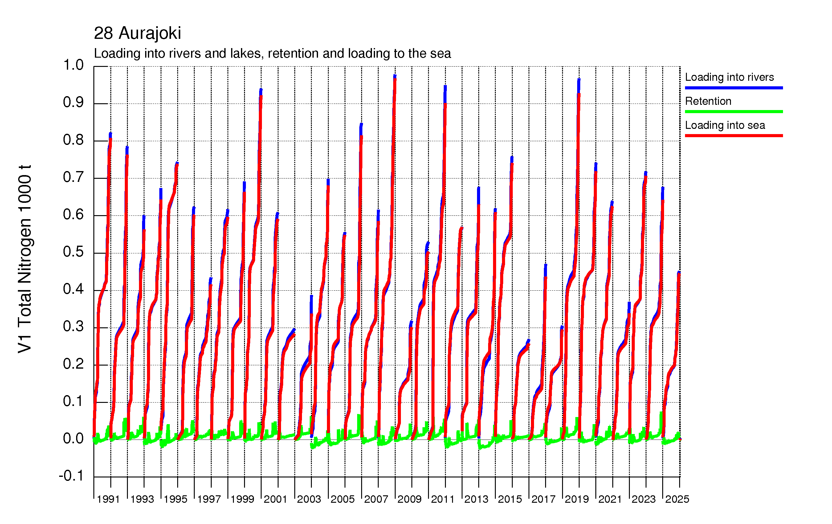 WSFS-Vemala: Kokonaistyppikuormitus: Aurajoen vesistöalue - summa