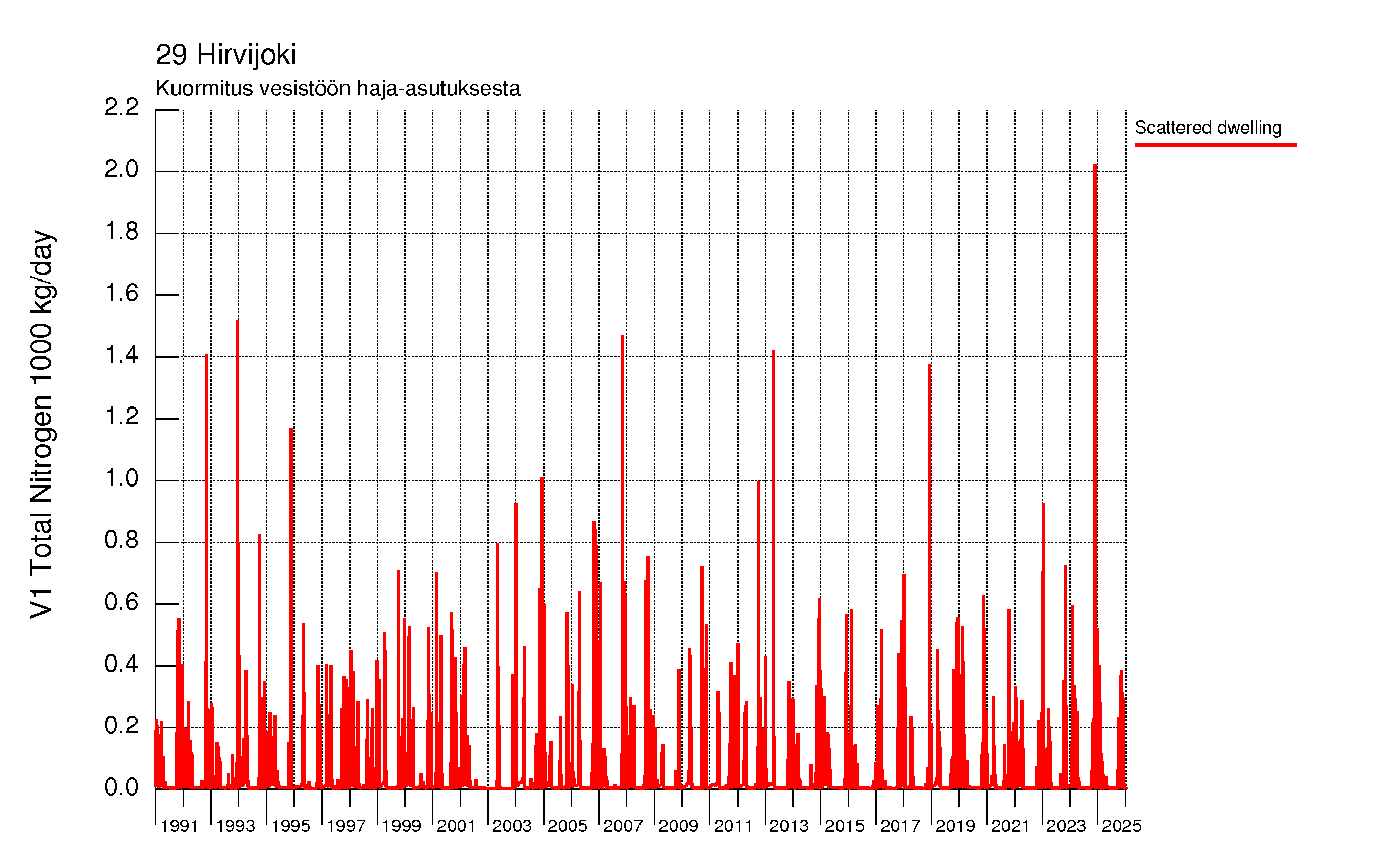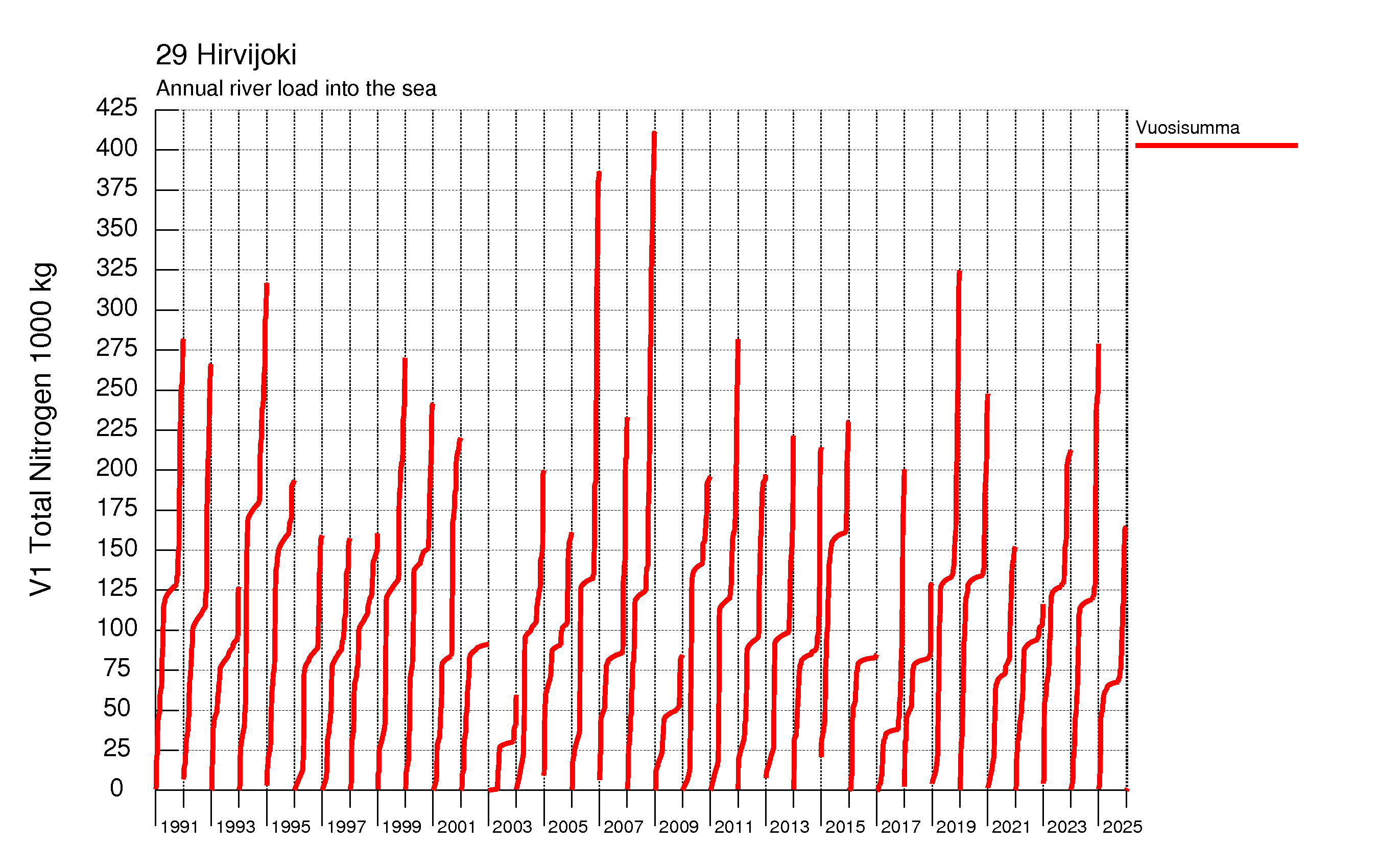 WSFS-Vemala: Kokonaistyppikuormitus: Hirvijoen vesistöalue - summa