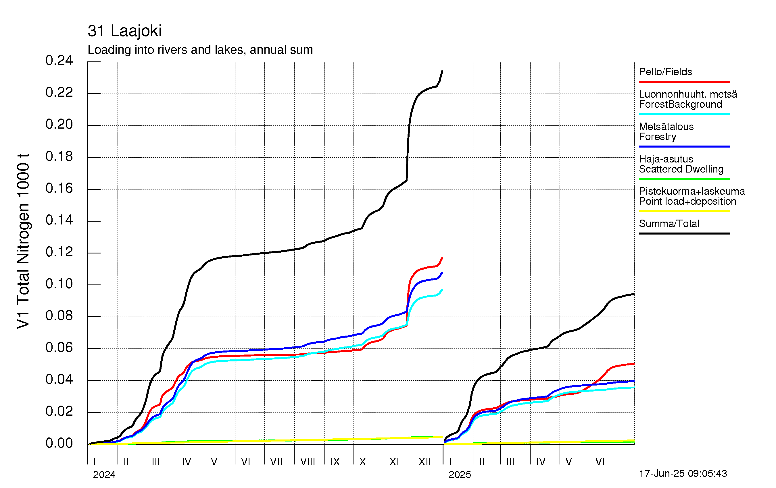 WSFS-Vemala: Kokonaistyppikuormitus: Laajoen vesistöalue - summa