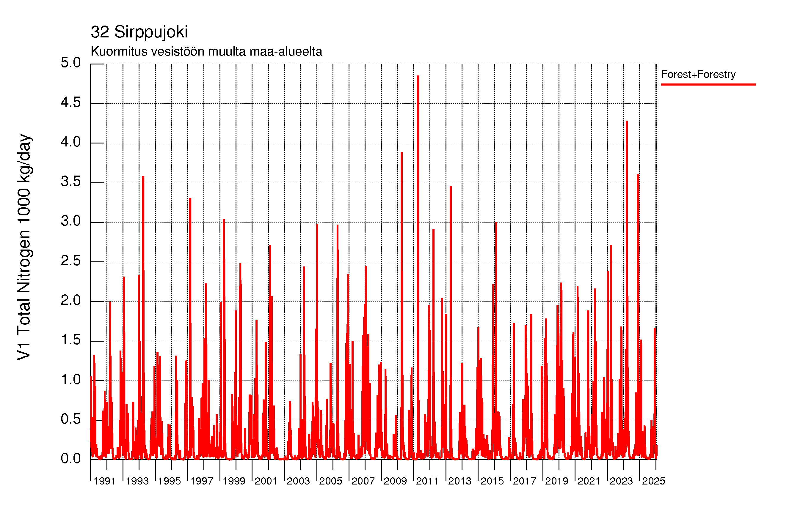 WSFS-Vemala: Kokonaistyppikuormitus: Sirppujoen vesistöalue - summa