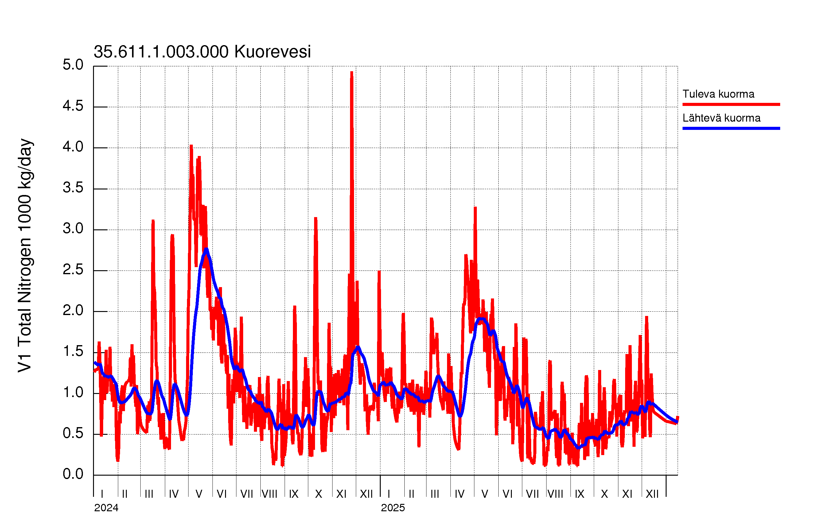 WSFS-Vemala: Kokonaistyppikuormitus: Kokemäenjoen vesistöalue - KuorevesiAsiantuntijan työpöytä > Ravinnekuormitus > Selkämeri > Kokemäenjoen vesistöalue > KuorevesiFOSFORI | TYPPI | KIINTOAINE