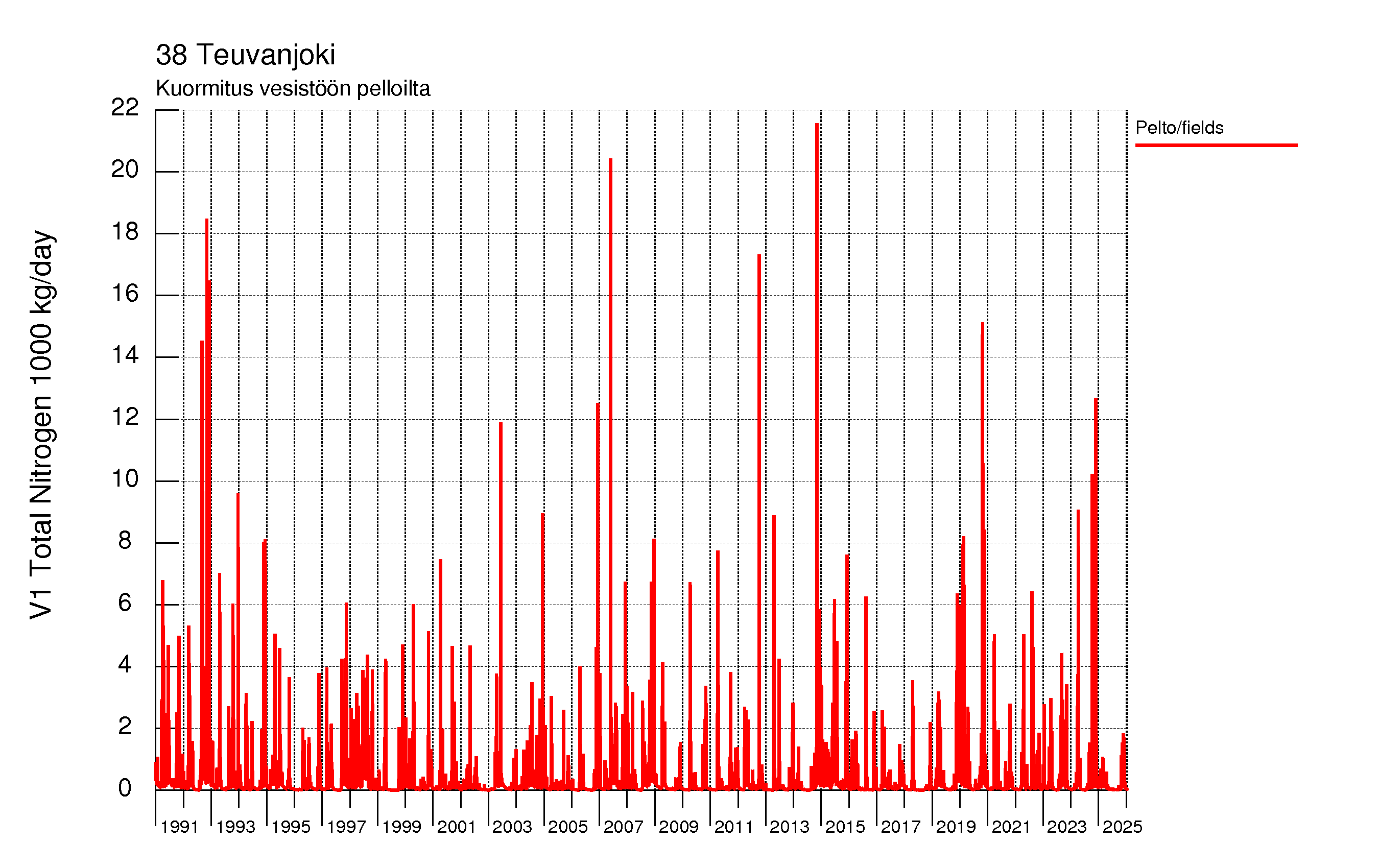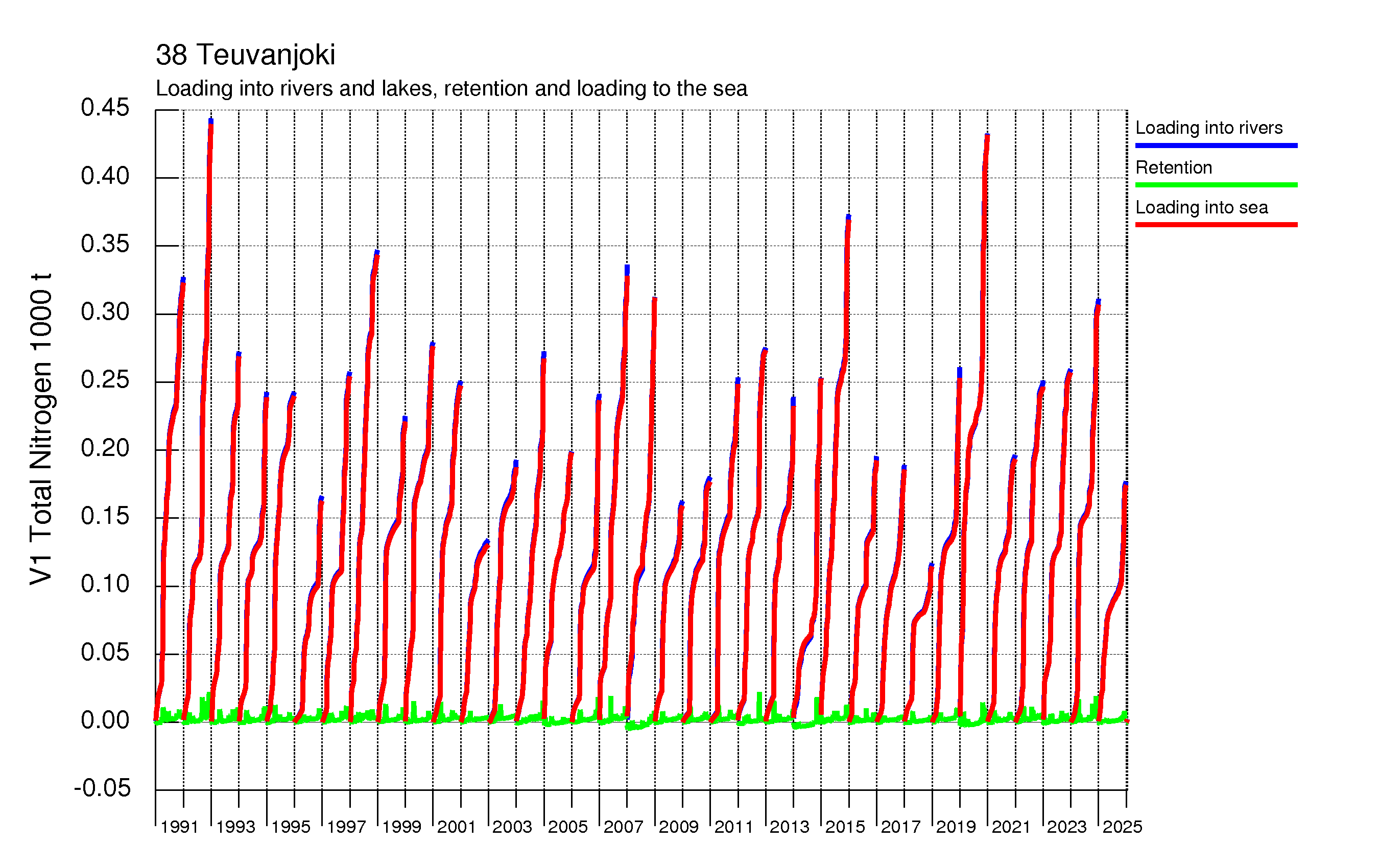 WSFS-Vemala: Kokonaistyppikuormitus: Teuvanjoen vesistöalue - summa