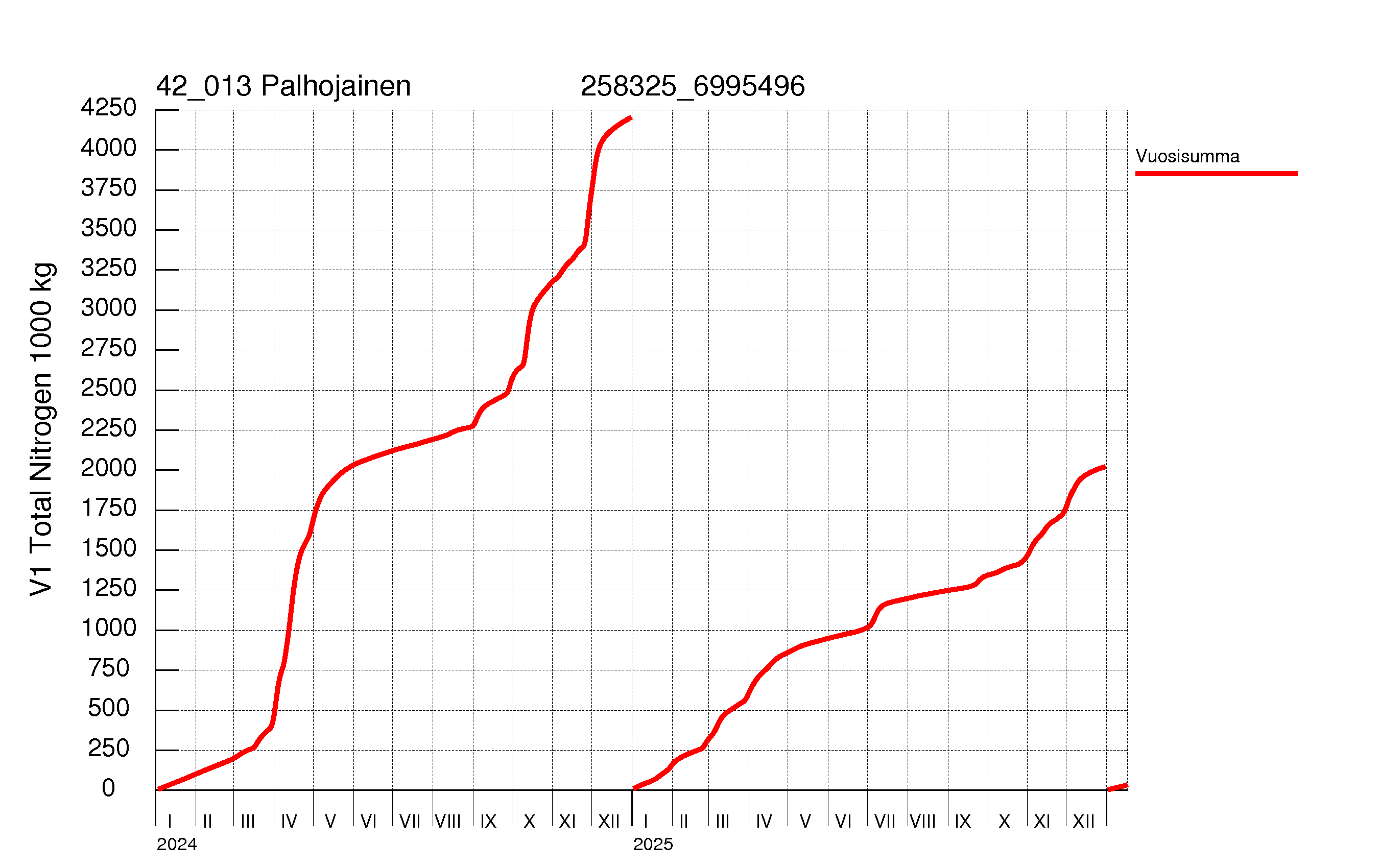 Typpikuorma![]() Typpi summakuorma![]() ![]() Typpipitoisuus![]() Virtaama![]() |