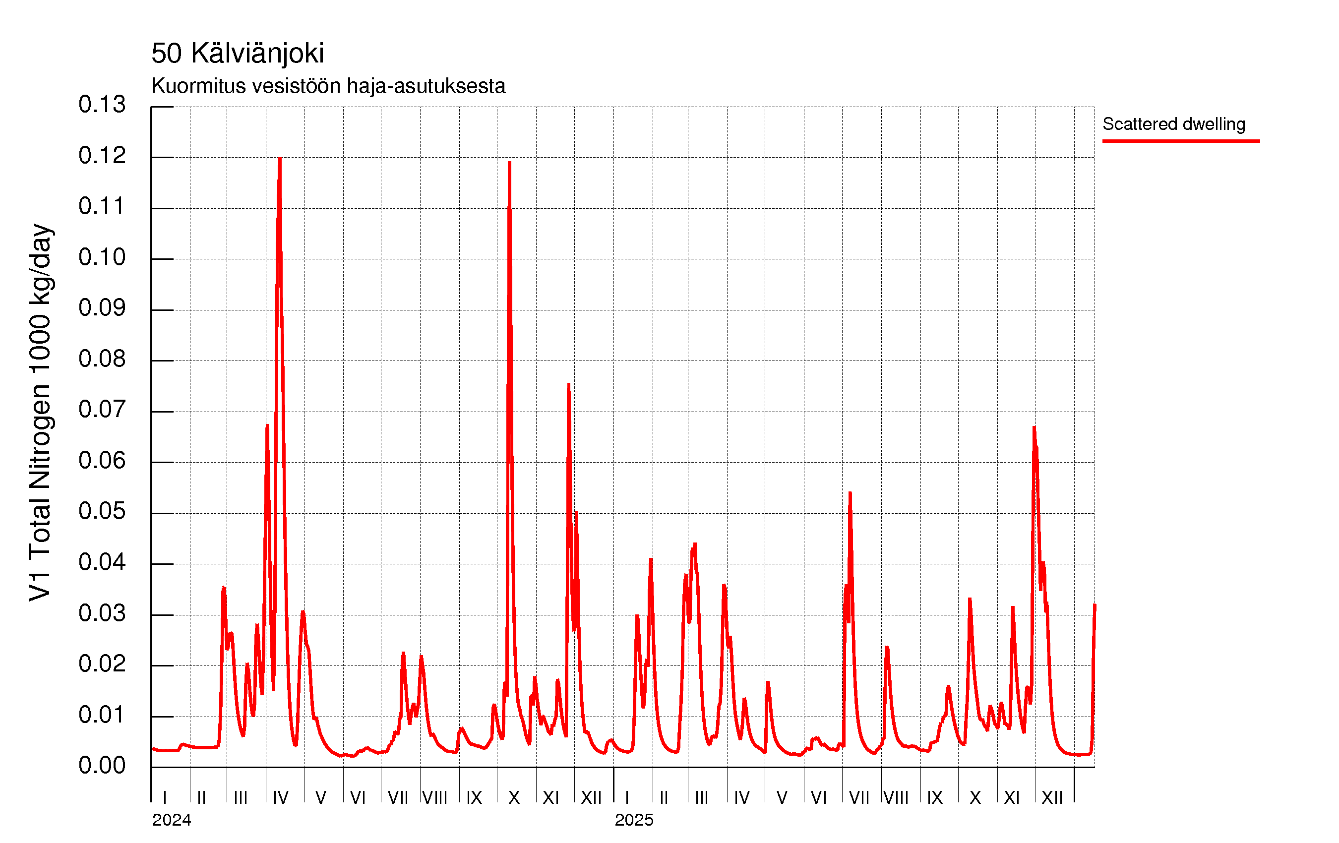 WSFS-Vemala: Kokonaistyppikuormitus: Kälviänjoen vesistöalue - summa