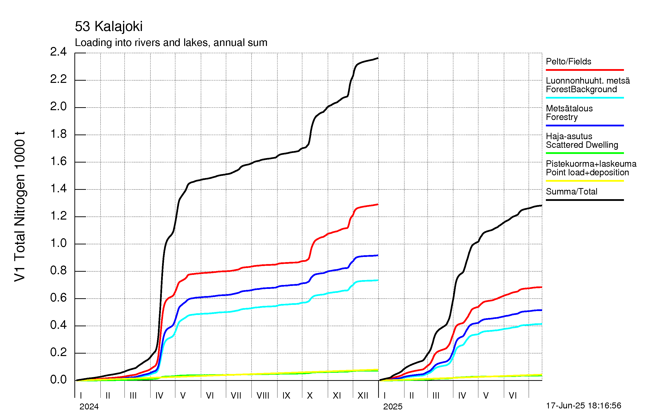WSFS-Vemala: Kokonaistyppikuormitus: Kalajoen vesistöalue - summa