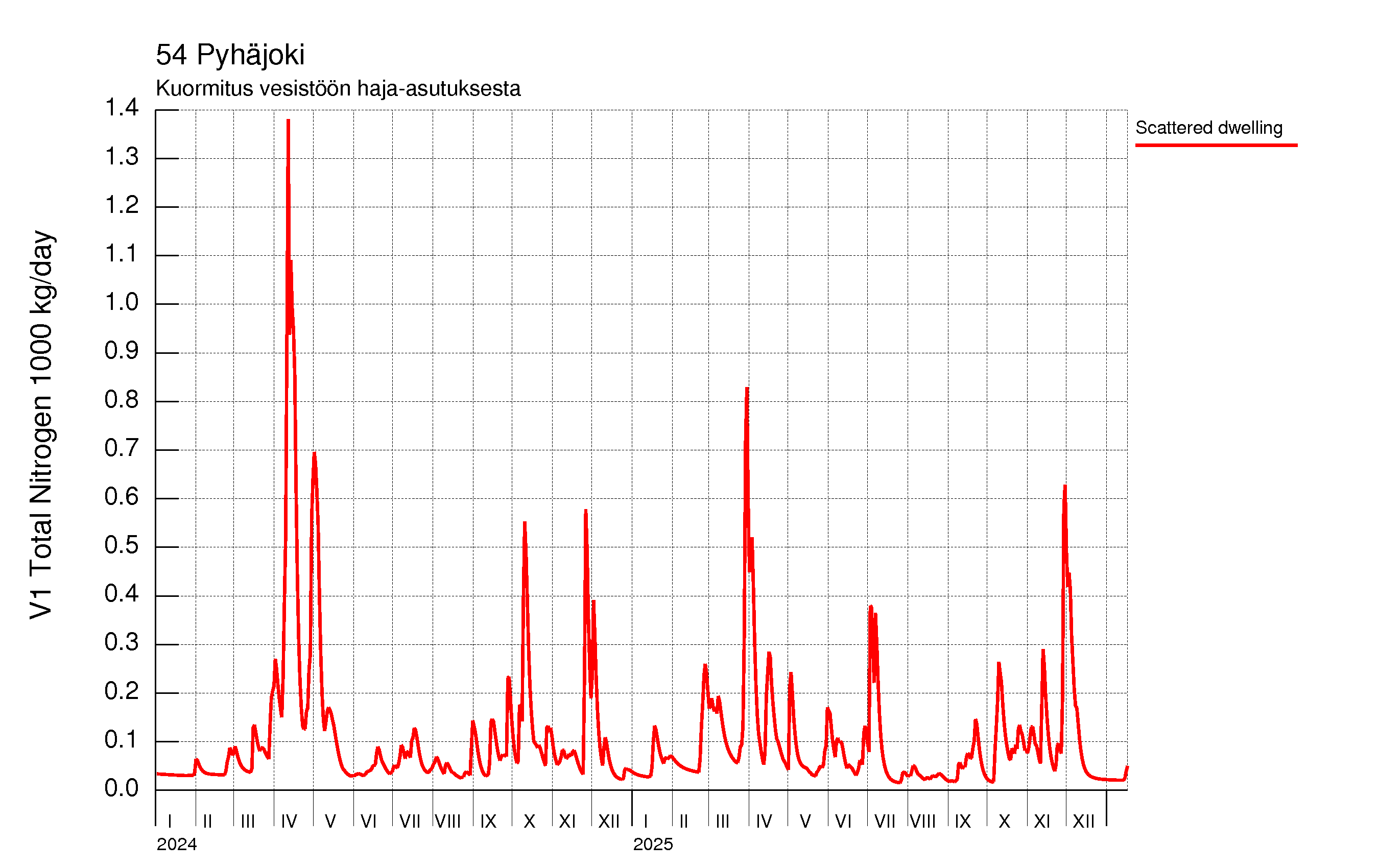 WSFS-Vemala: Kokonaistyppikuormitus: Pyhäjoen vesistöalue - summa
