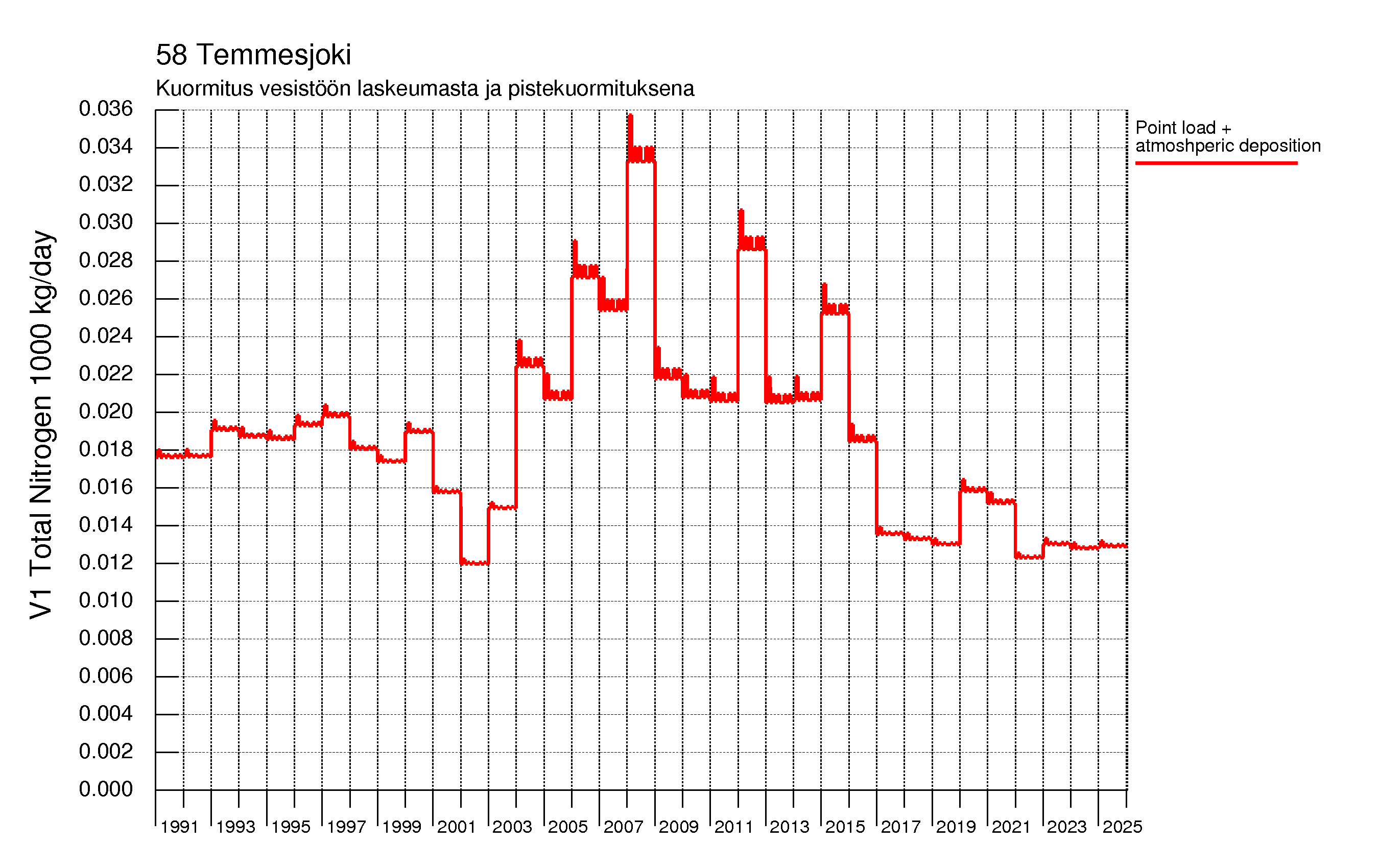 WSFS-Vemala: Kokonaistyppikuormitus: Temmesjoen vesistöalue - summa