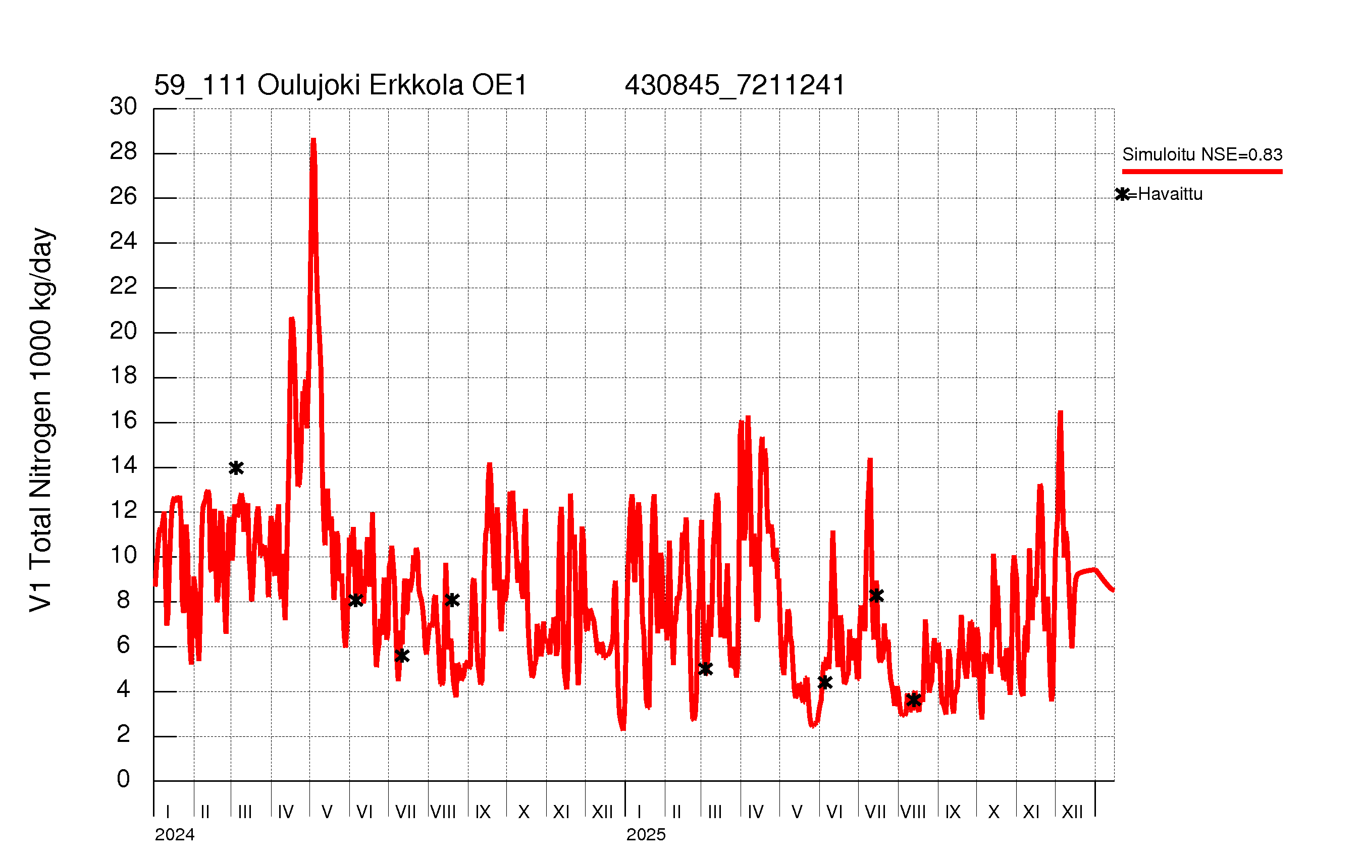 WSFS-Vemala: Kokonaistyppikuormitus: Oulujoen vesistöalue - Oulujoki Oulu
