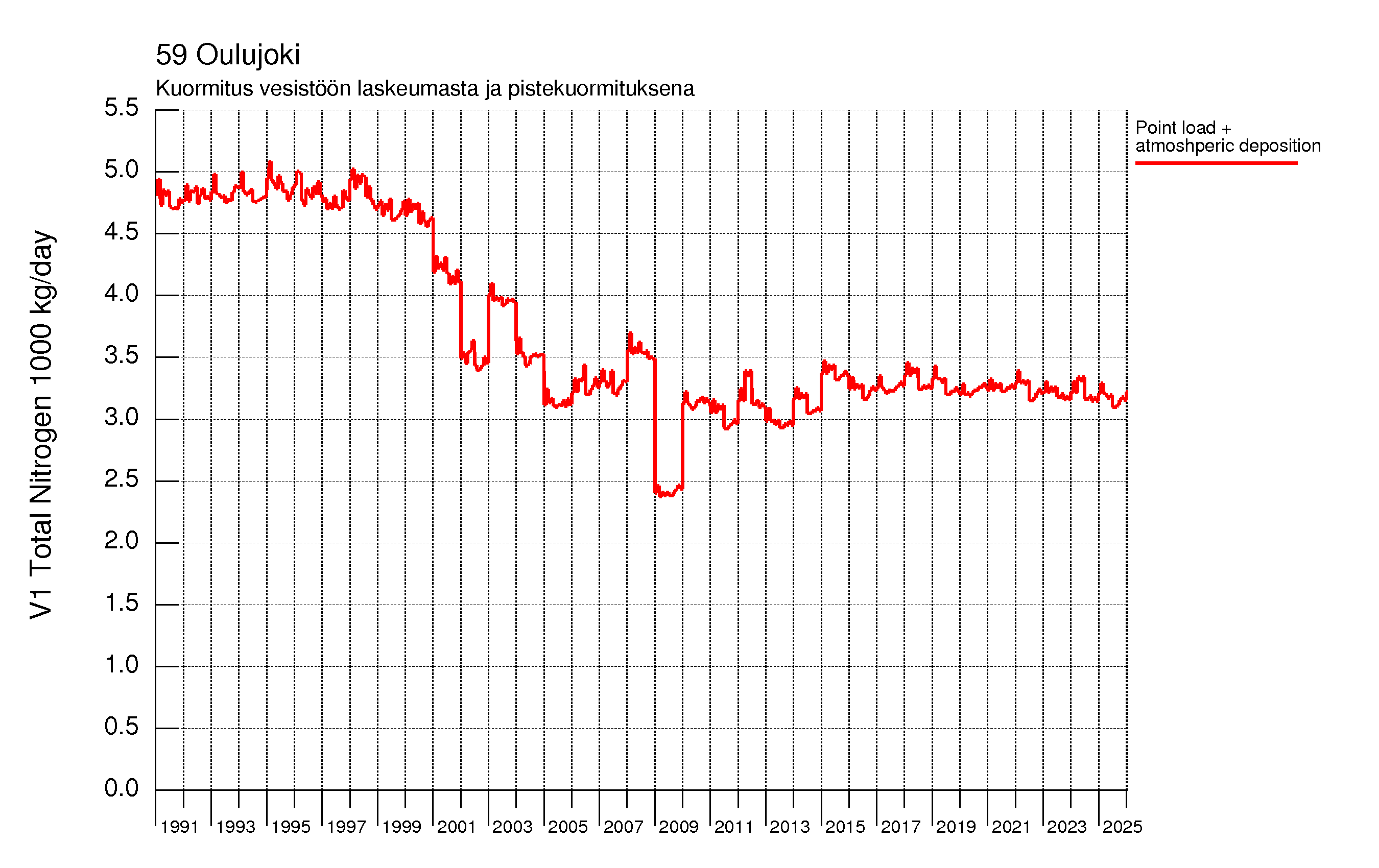 WSFS-Vemala: Kokonaistyppikuormitus: Oulujoen vesistöalue - summa