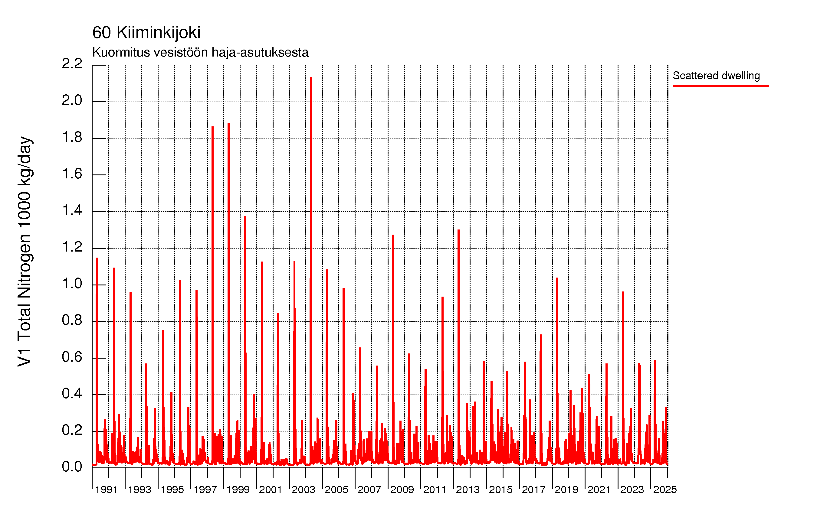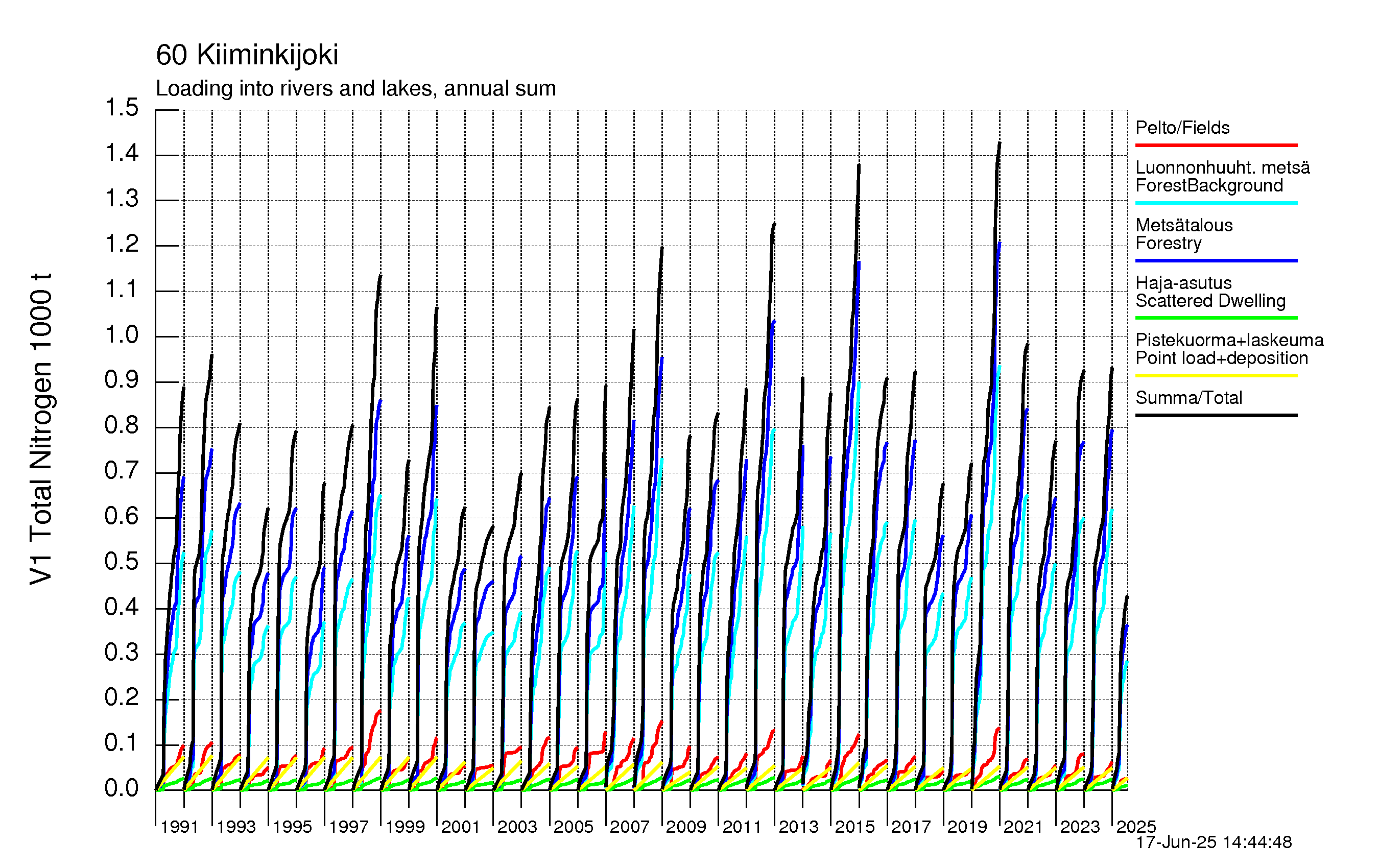 WSFS-Vemala: Kokonaistyppikuormitus: Kiiminkijoen vesistöalue - summa