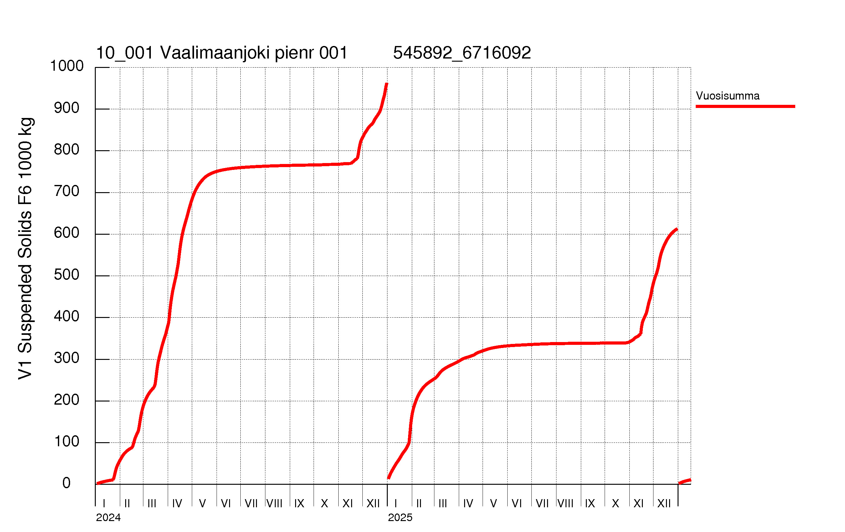 WSFS-Vemala: Kokonaiskiintoainekuormitus: Vaalimaanjoen vesistöalue - VaalimaanjokiAsiantuntijan työpöytä > Ravinnekuormitus > Suomenlahti > Vaalimaanjoen vesistöalue > VaalimaanjokiFOSFORI | TYPPI | KIINTOAINE