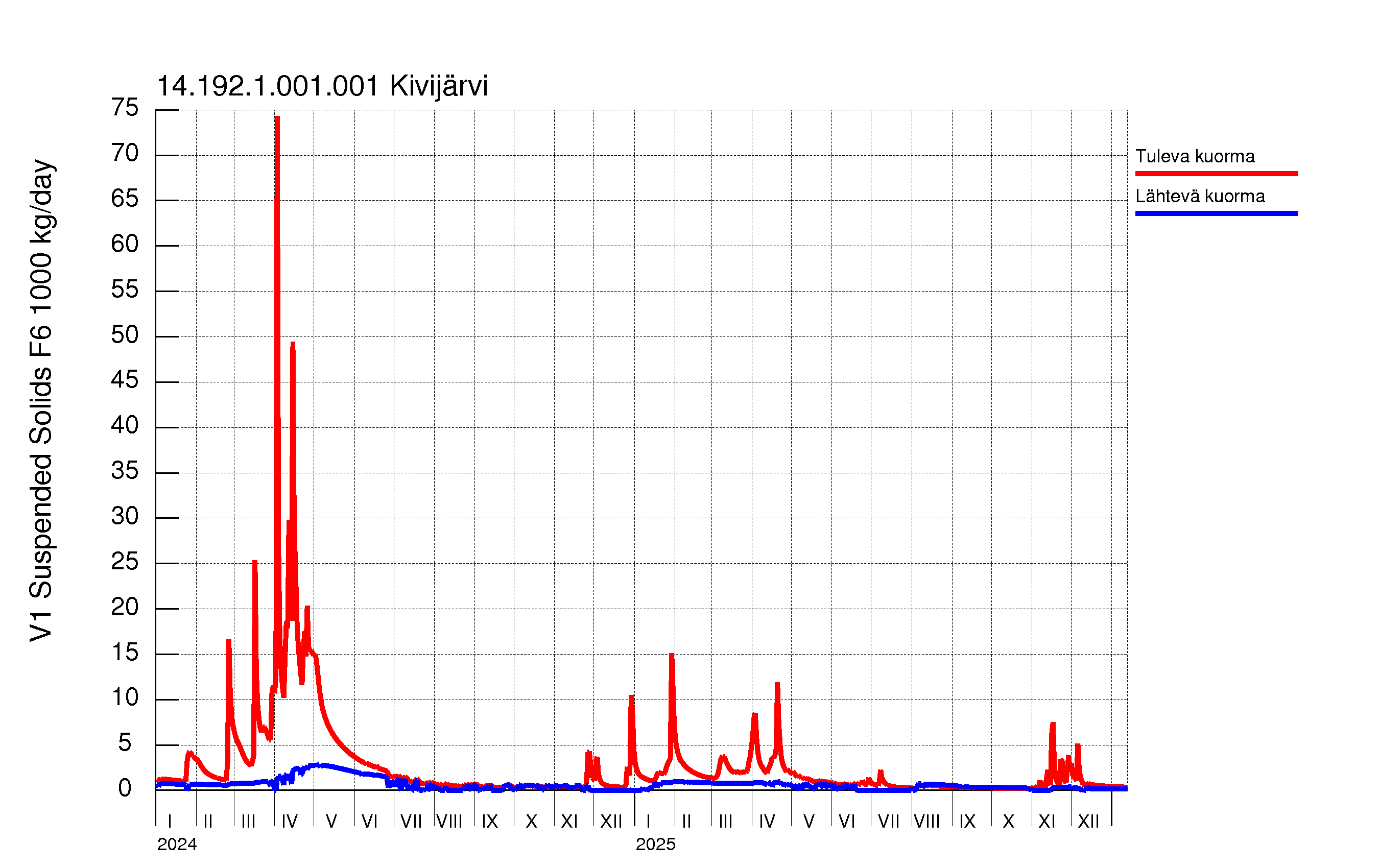 WSFS-Vemala: Kokonaiskiintoainekuormitus: Kymijoen vesistöalue - KivijärviAsiantuntijan työpöytä > Ravinnekuormitus > Suomenlahti > Kymijoen vesistöalue > KivijärviFOSFORI | TYPPI | KIINTOAINE