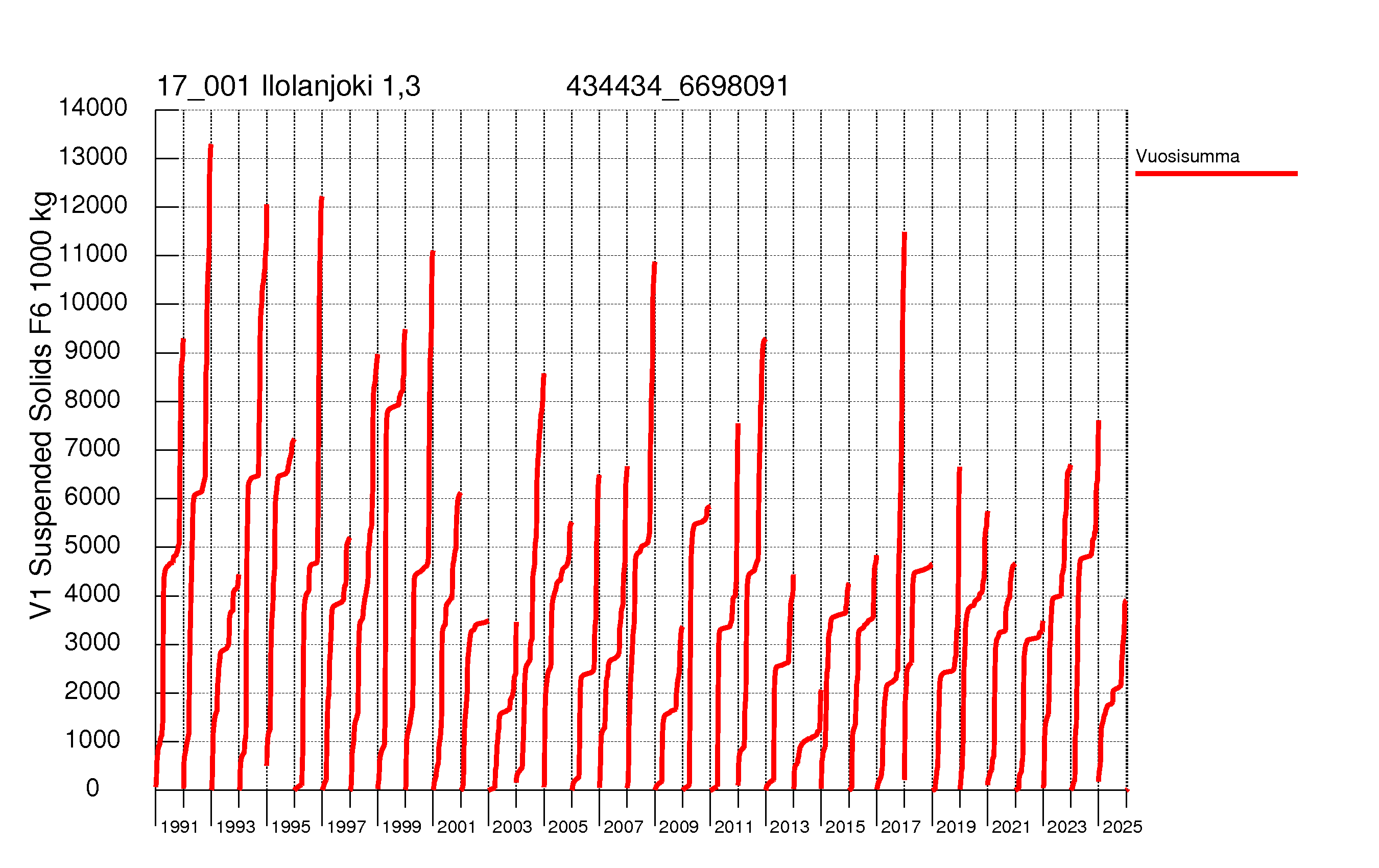 Kiintoainekuorma![]() Kiintoaine summakuorma![]() ![]() Kiintoainepitoisuus![]() Virtaama![]() |