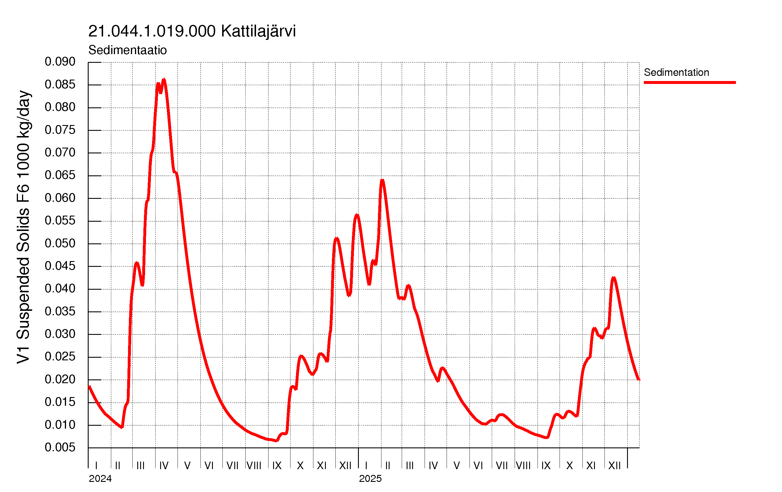 WSFS-Vemala: Kokonaiskiintoainekuormitus: Vantaanjoen vesistöalue - KattilajärviAsiantuntijan työpöytä > Ravinnekuormitus > Suomenlahti > Vantaanjoen vesistöalue > KattilajärviFOSFORI | TYPPI | KIINTOAINE