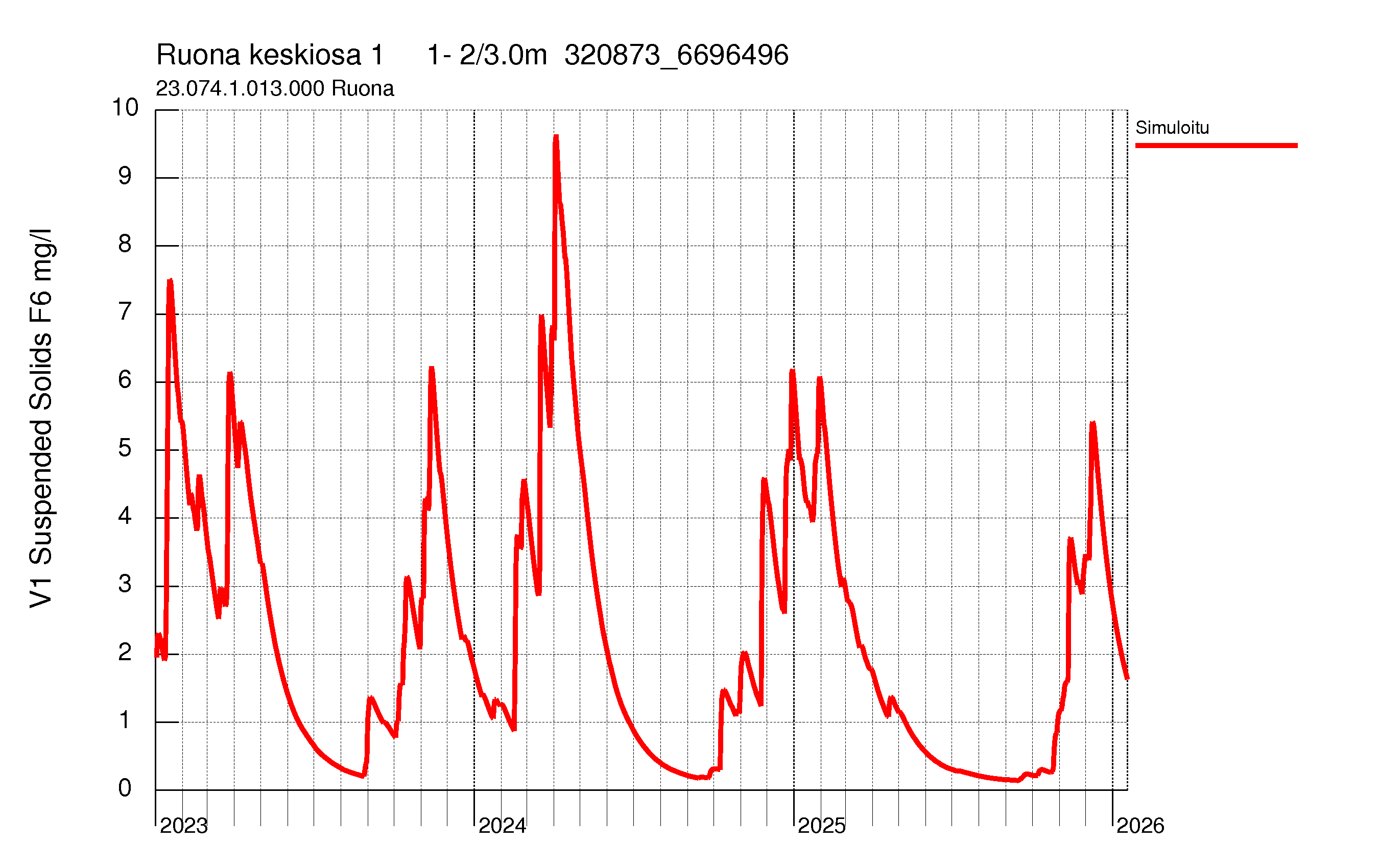 Kiintoainepitoisuus![]() Kiintoainekuormitus![]() Kiintoaine summakuorma![]() ![]() Kiintoaine sedimentaatio![]() |